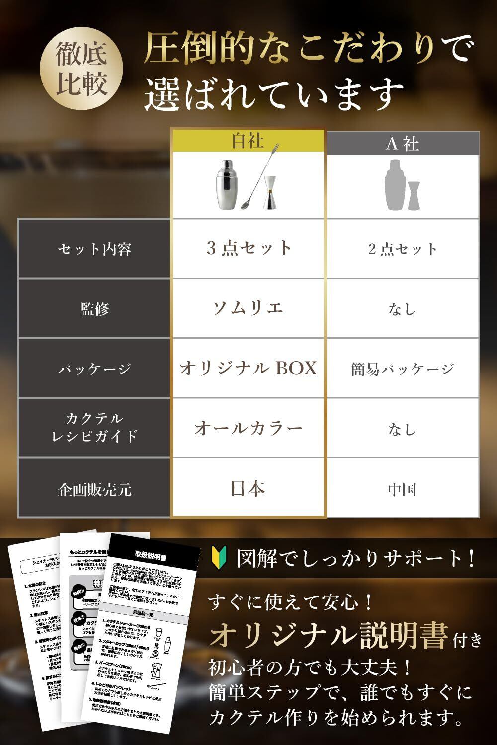 本セットはソムリエ監修のもとで開発されたもので、 初心者でも“簡単・手軽に本格カクテル”を楽しめるよう設計されています。