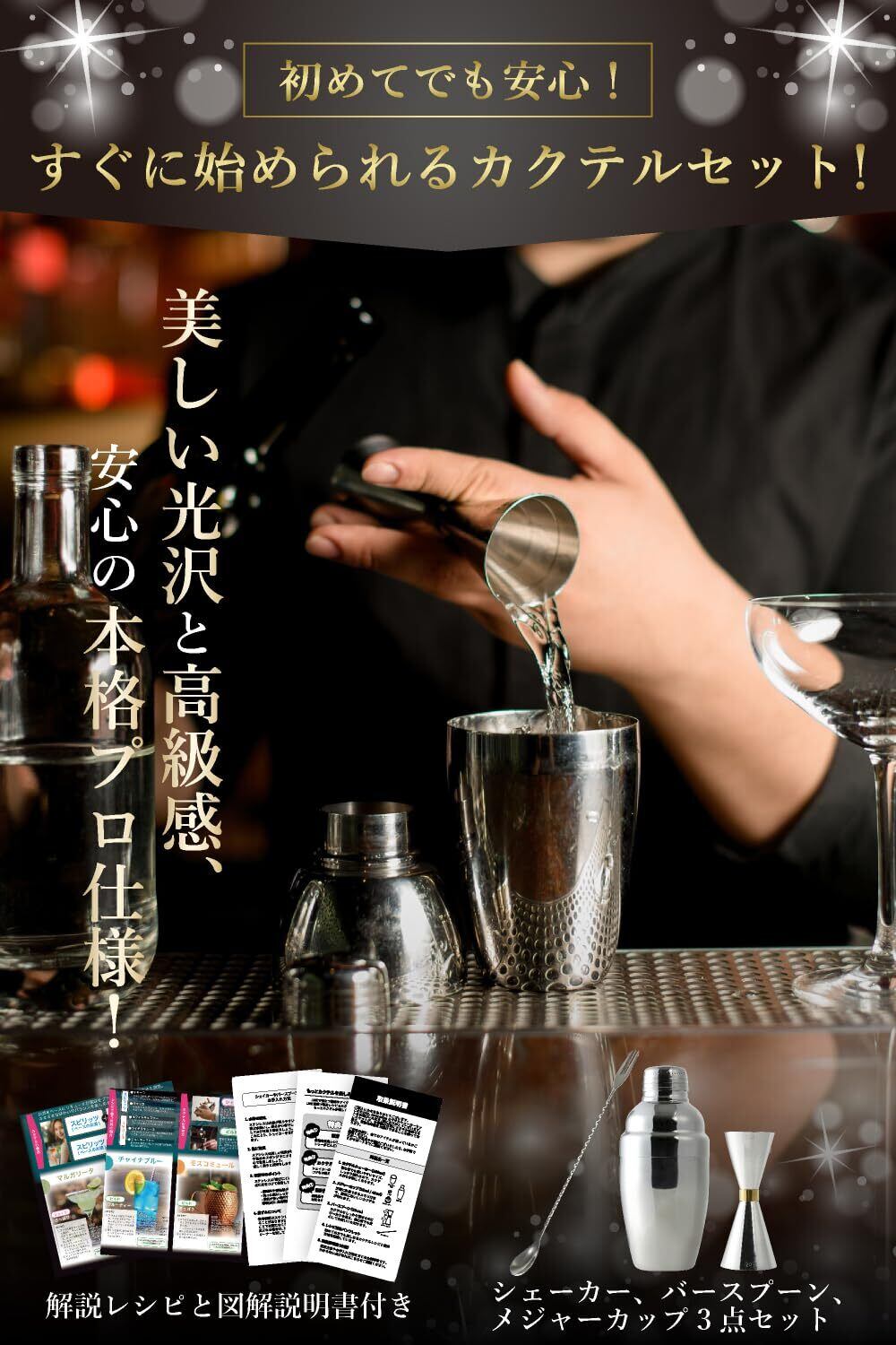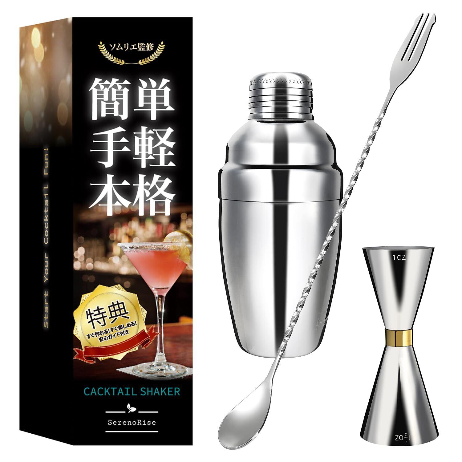 【ソムリエ監修】カクテルシェイカー 3点セット プロ仕様 シェイカー メジャーカップ バースプーン ギフト バーツール カラーレシピ イラスト付き説明書 SerenoRise