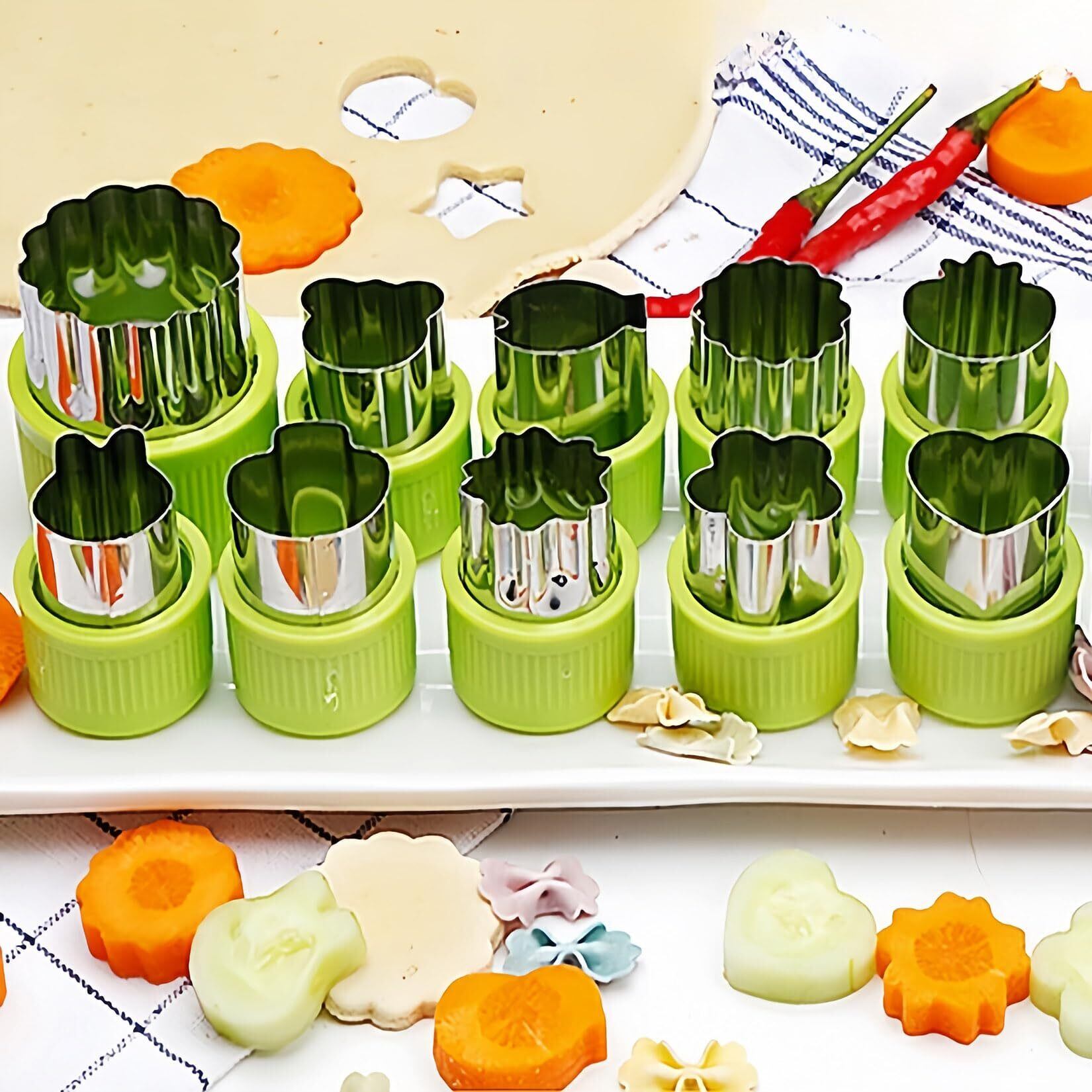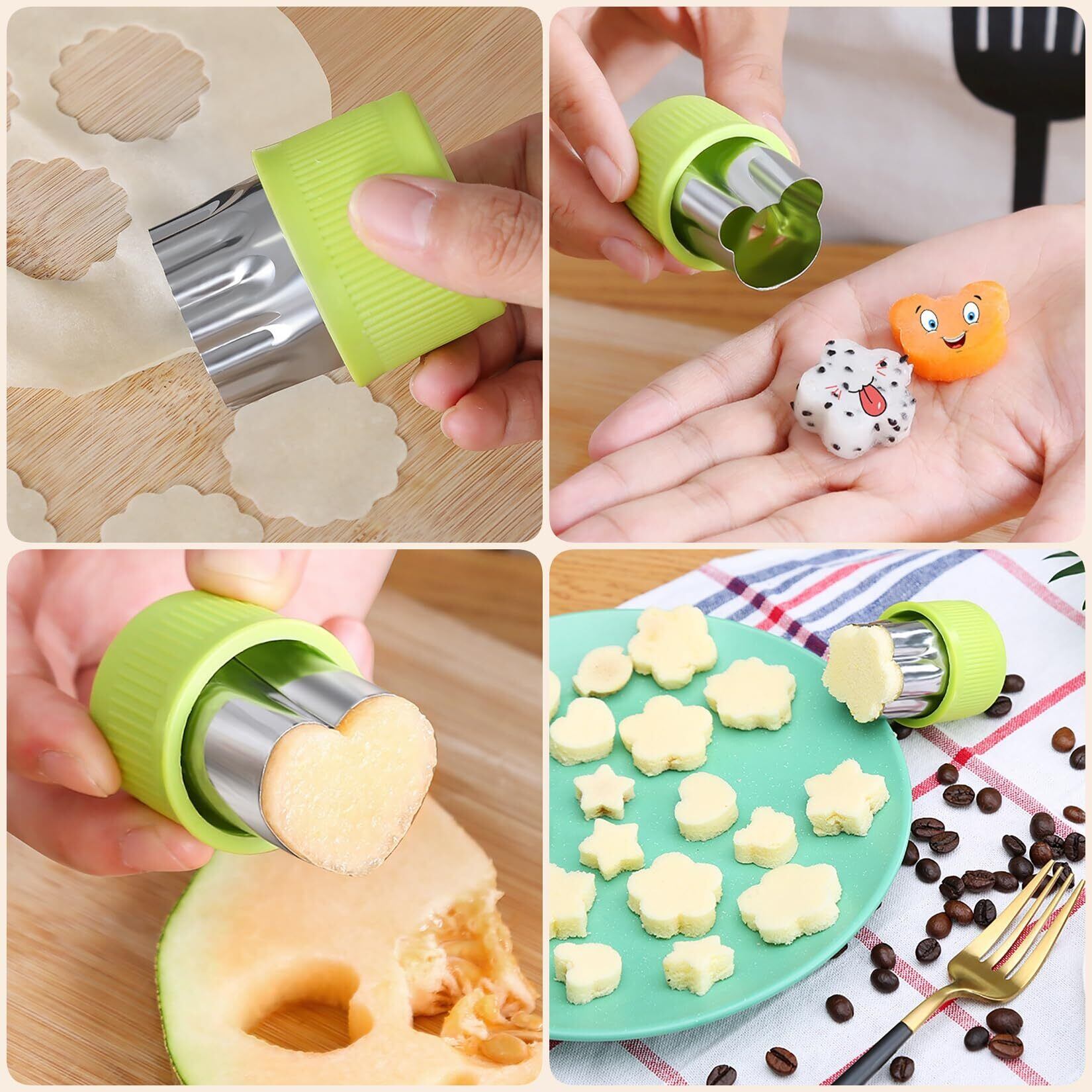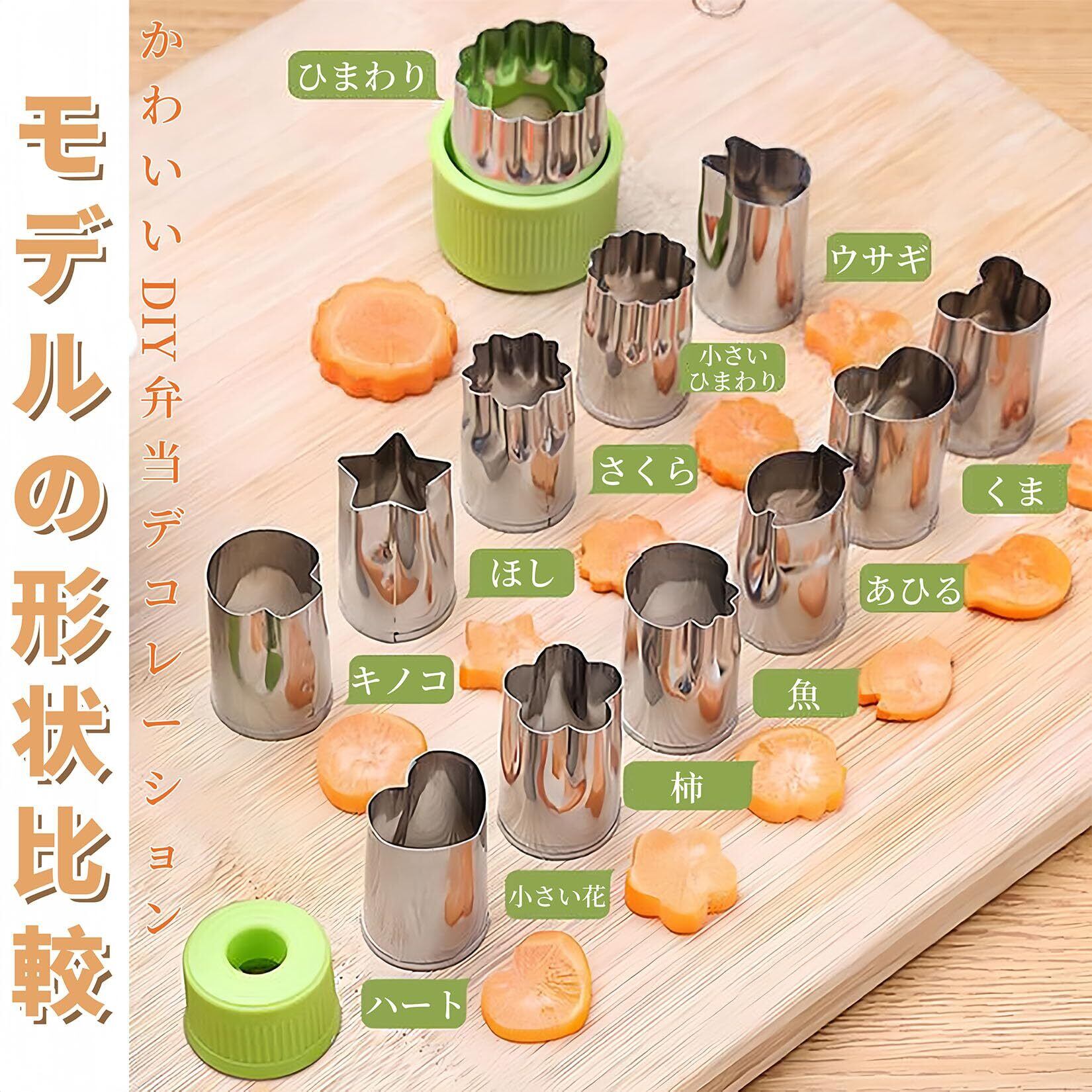 【多様なデザイン】ユニークな型抜きがセットになっており、お好みの形で野菜やフルーツをデコレーションできます。