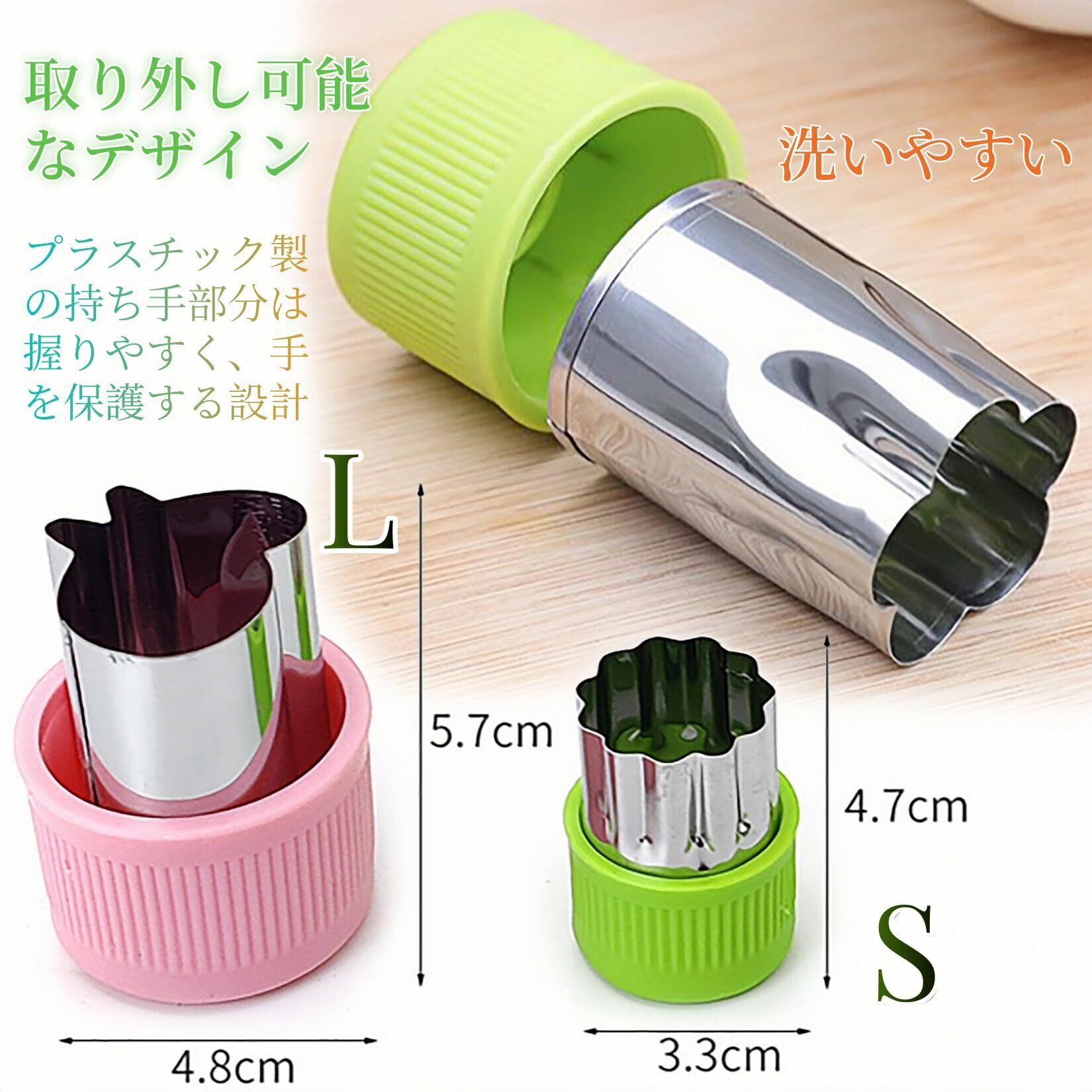 野菜やフルーツをおしゃれにデコレーションできる型抜きセットです。弁作りやホームパーティーの準備に最適なアイテムです。高品質なステンレス素材を採用しており、安全性と耐久性を兼ね備えています。プラスチック製の取っ手部分は滑りにくく、使いやすさを追求した設計です。型抜きで多彩なデザインを簡単に楽しめます。