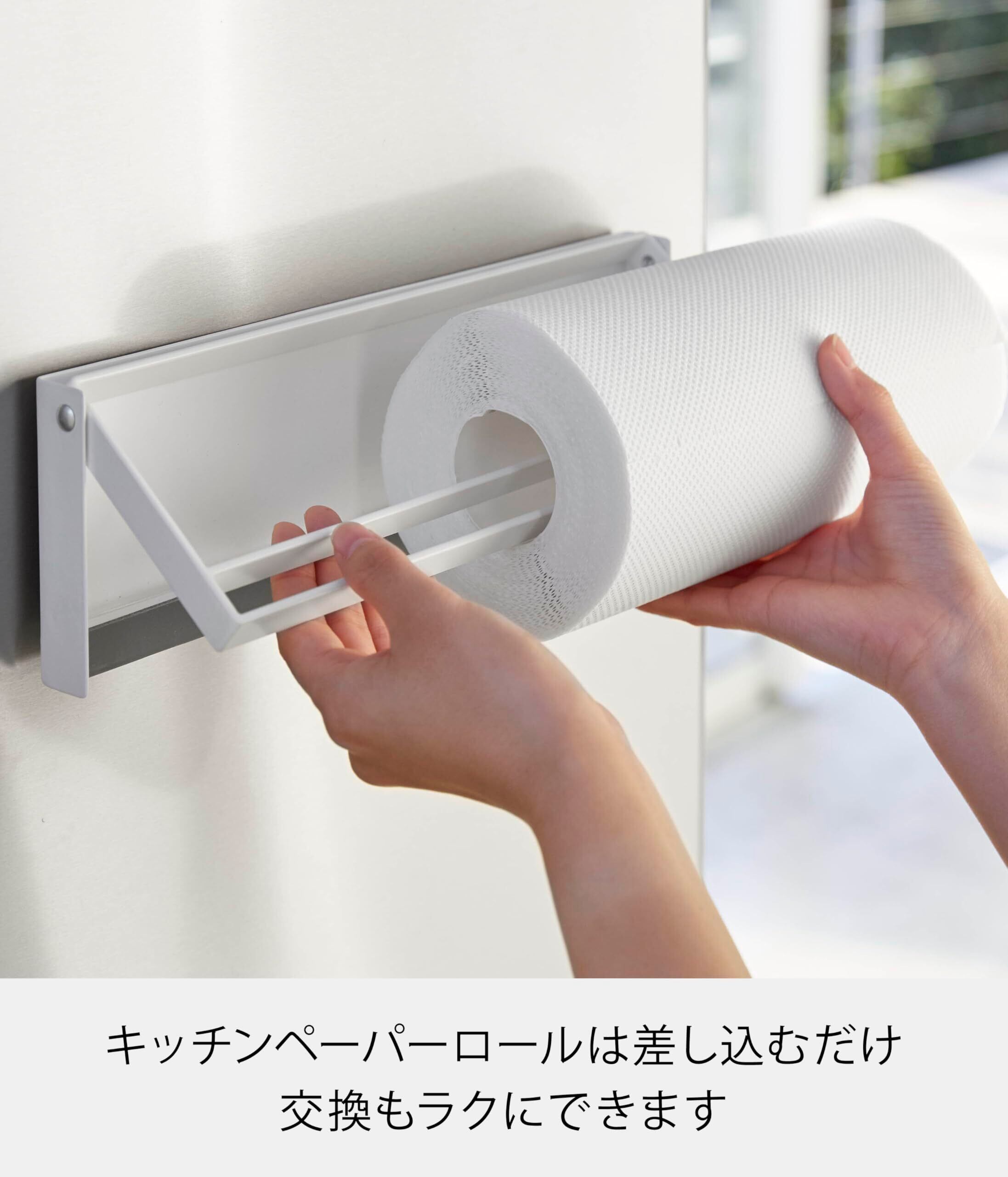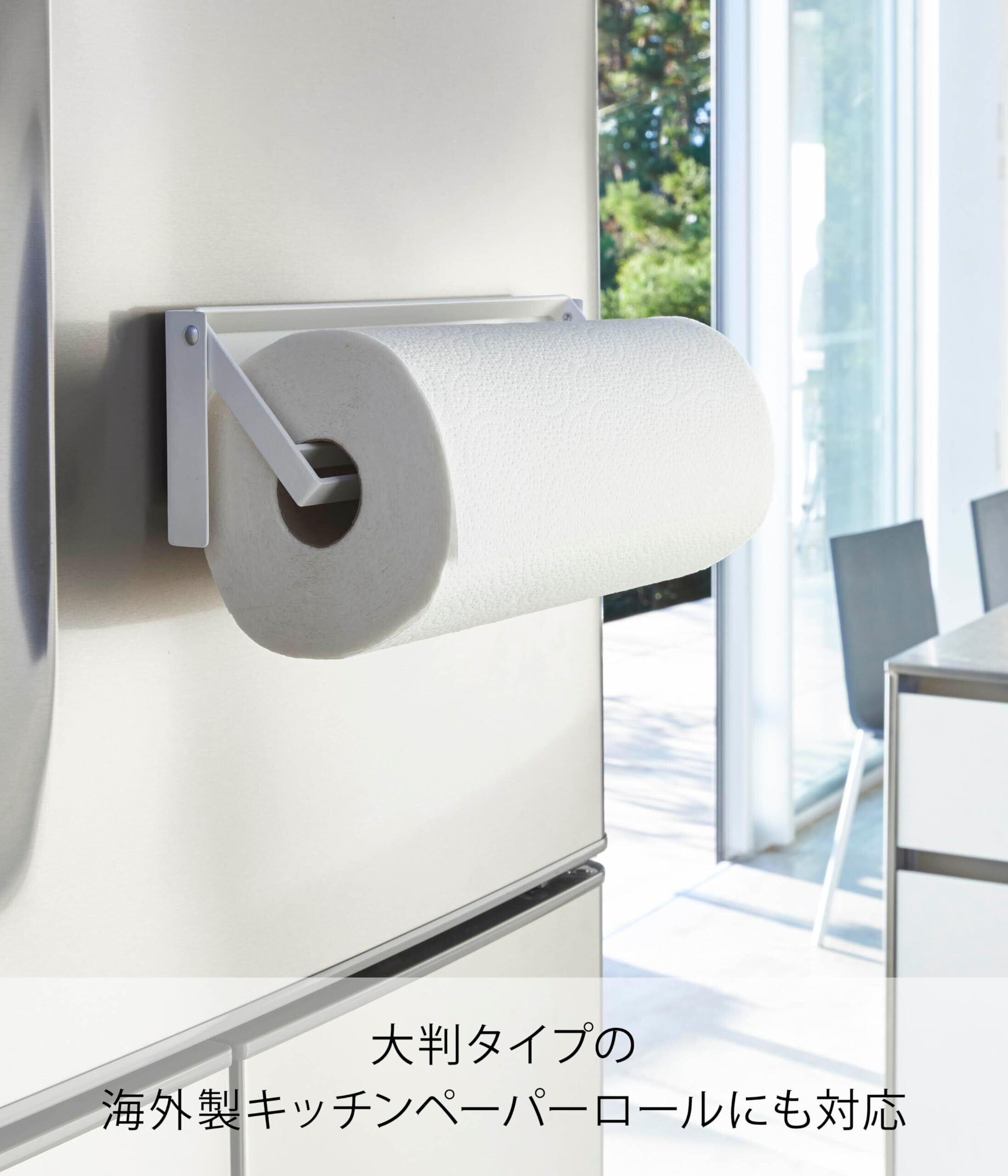 対応サイズ:直径約15cm、高さ約28cmまでのキッチンペーパーロール マグネットが付く平らな面・スチール壁面