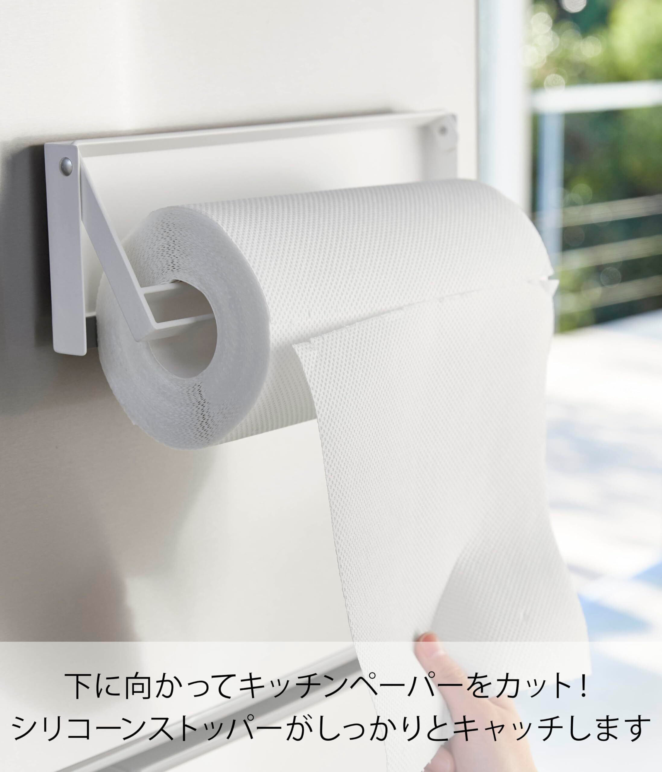 山崎実業(Yamazaki) 片手でカットマグネットキッチンペーパーホルダー ホワイト 約W30.5XD2.5XH9.5cm プレート 海外製の大判タイプにも対応 4943