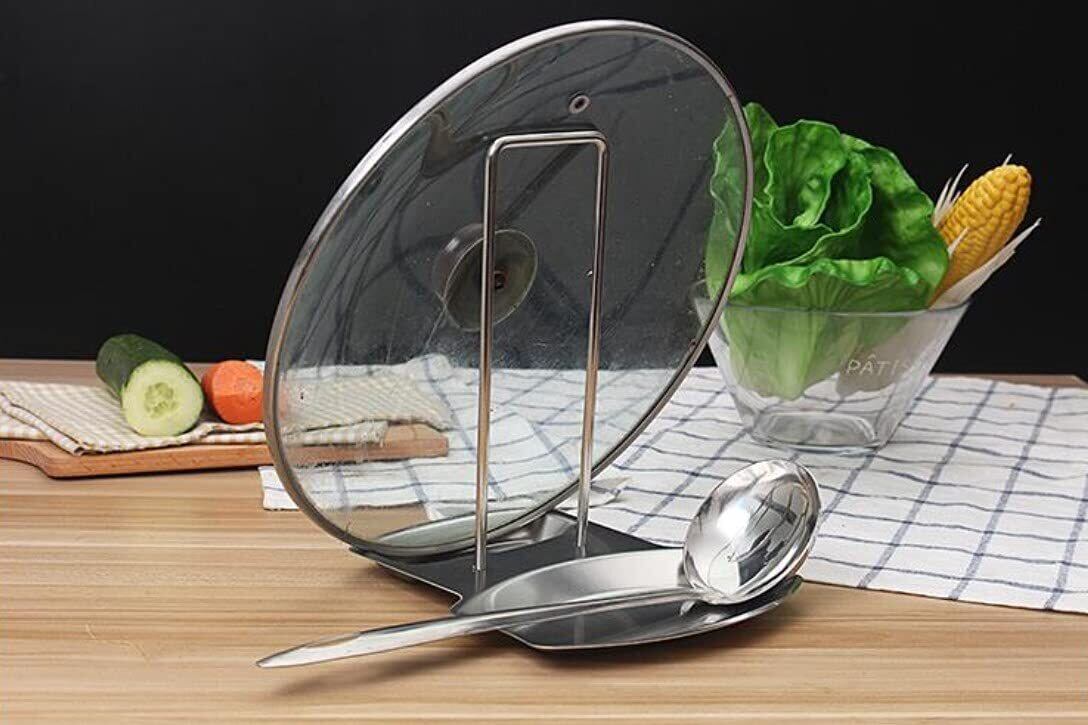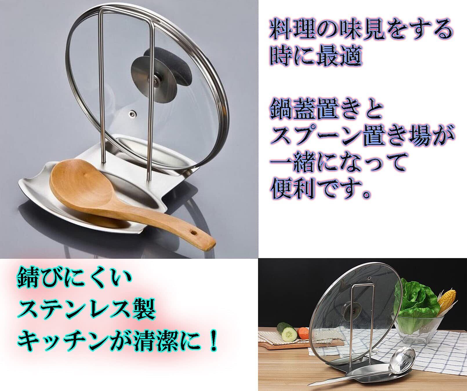 【ヘルスリフェ】 ステンレス製鍋蓋スタンド 味見セット フライパン蓋置き お玉置き おたま置き スプーン置き場 ステンレス製 キッチンツールスタンド 料理味見スタンド