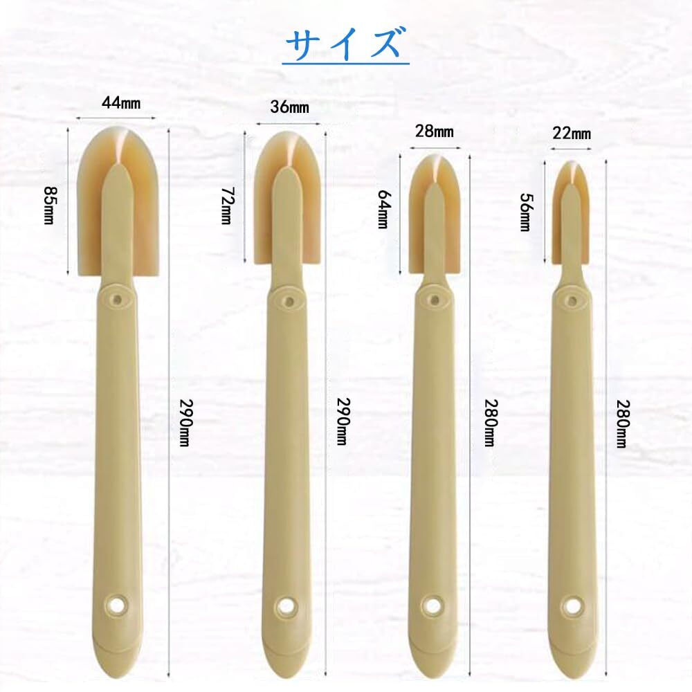 【4点セット】コーキング仕上げツールは、22mm、28mm、36mm、44mmの4サイズがセットになっており、さまざまなシーリング作業に対応できます。