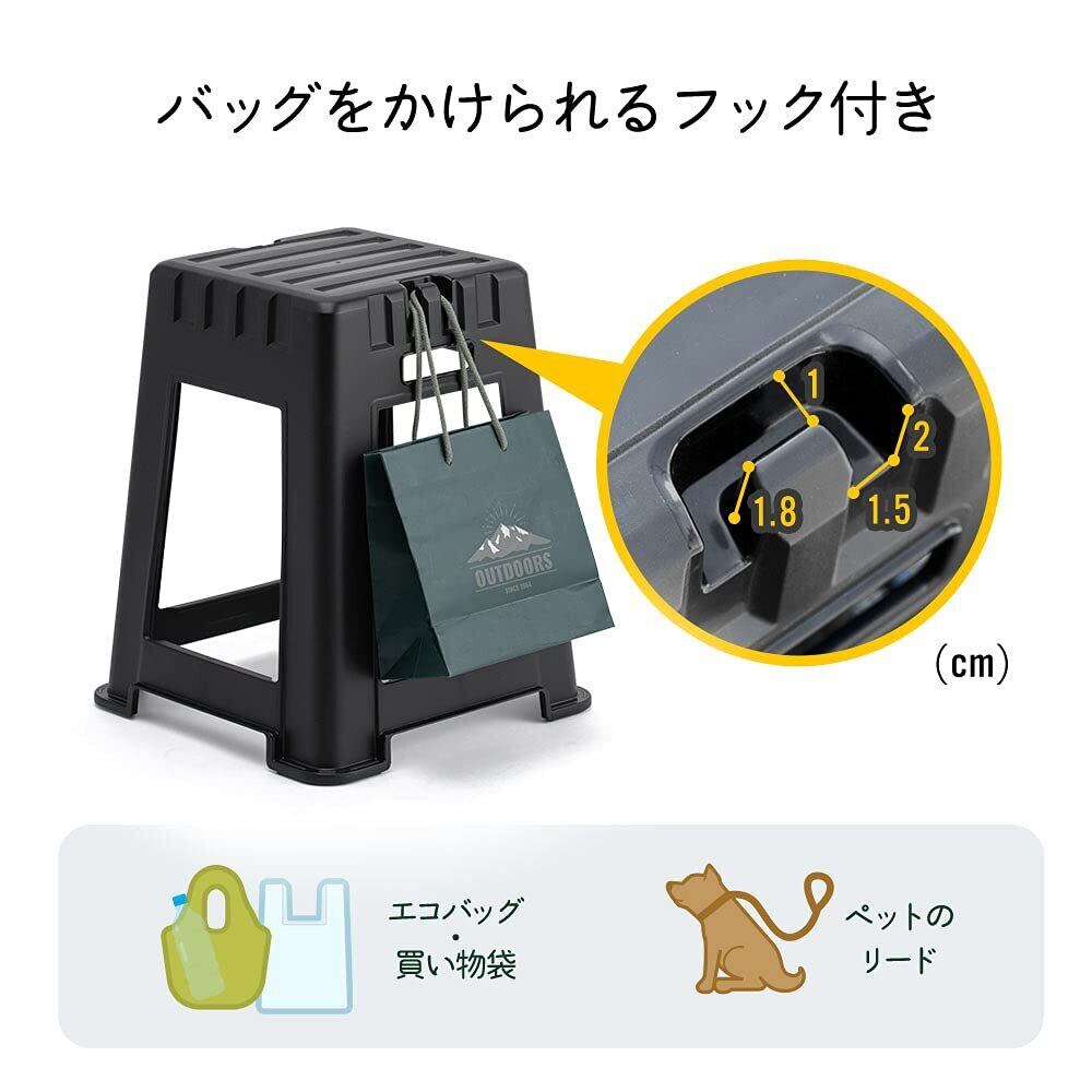使わないときはスタッキングして、省スペースで収納できます。バッグなどをかけておけるフックが付いています。水や汚れに強く、お手入れ簡単です。