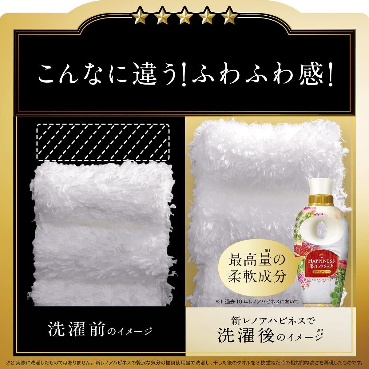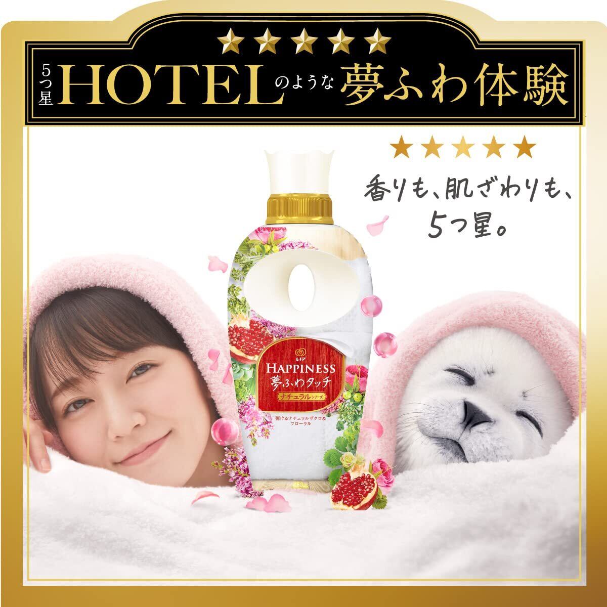5つ星ホテル推奨!新レノアハピネス夢ふわタッチで香りも肌ざわりも5つ星。大改良したレノアハピネス夢ふわタッチでおうちにいながら5つ星ホテルの贅沢を体験してください。