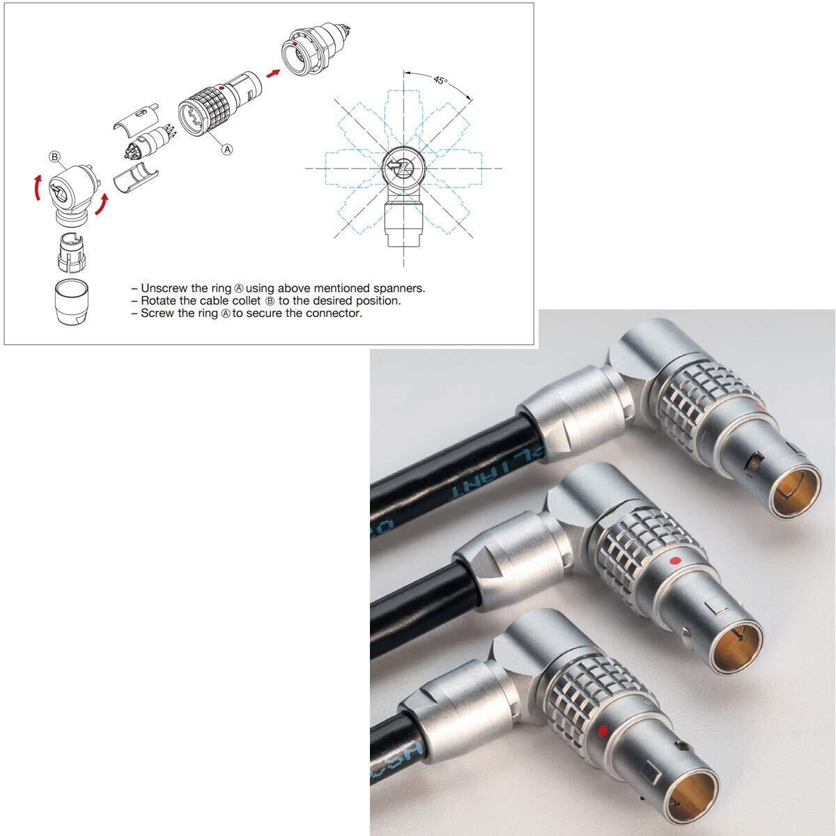 コネクタは90度回転調整可能な直角6ピンメスで、確実でスムーズな接続。DJI用コネクターはデフォルトで下向き(6時)になっています。また、9mmレンチ/スパナを使用して、コネクタリングのネジを緩めて回転させることができます。