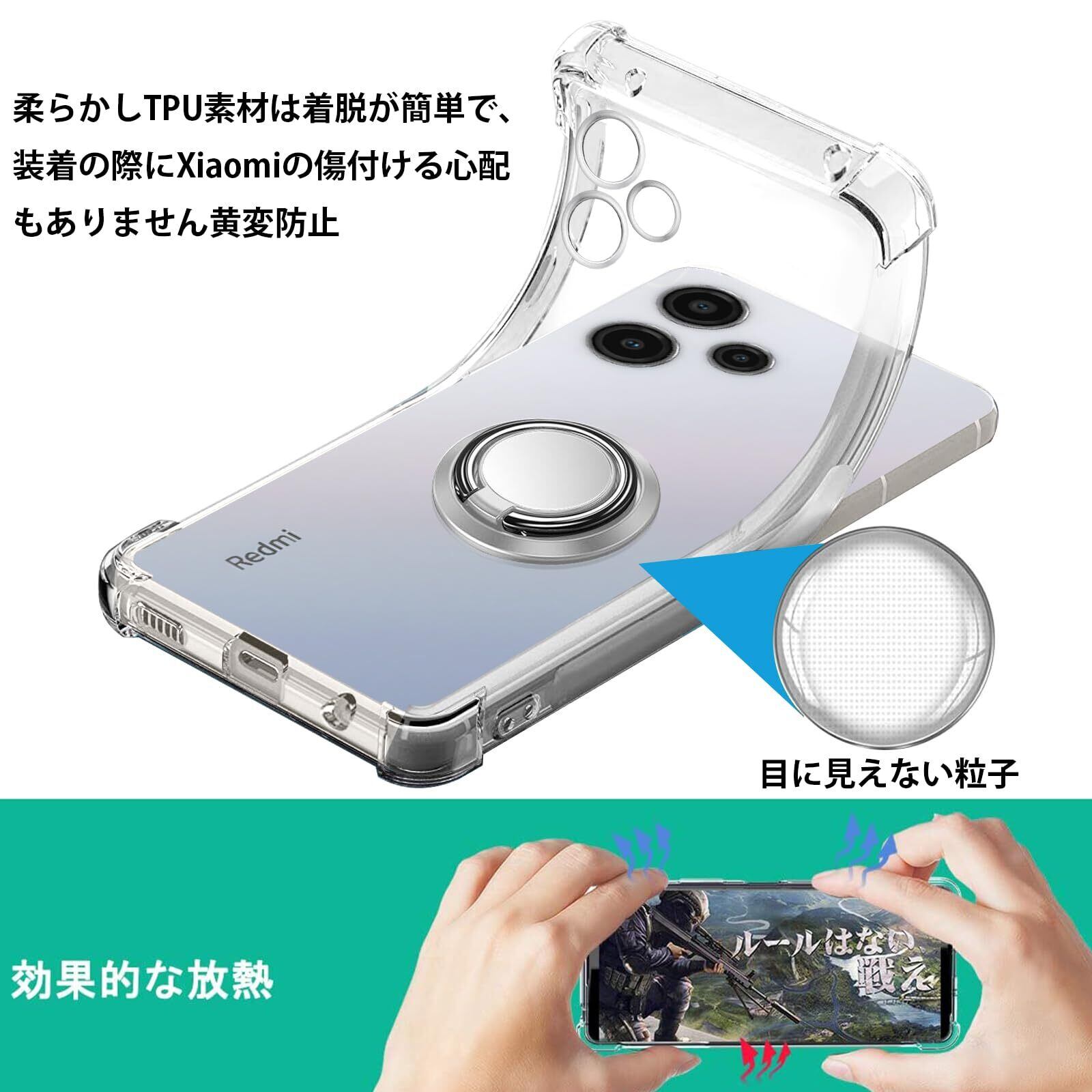 Redmi 12 5G ケース リング TPU 薄型 軽量シリコン 耐衝撃 指紋防止 車載ホルダー対応 防塵 一体型 人気 携帯カバー(クリア)