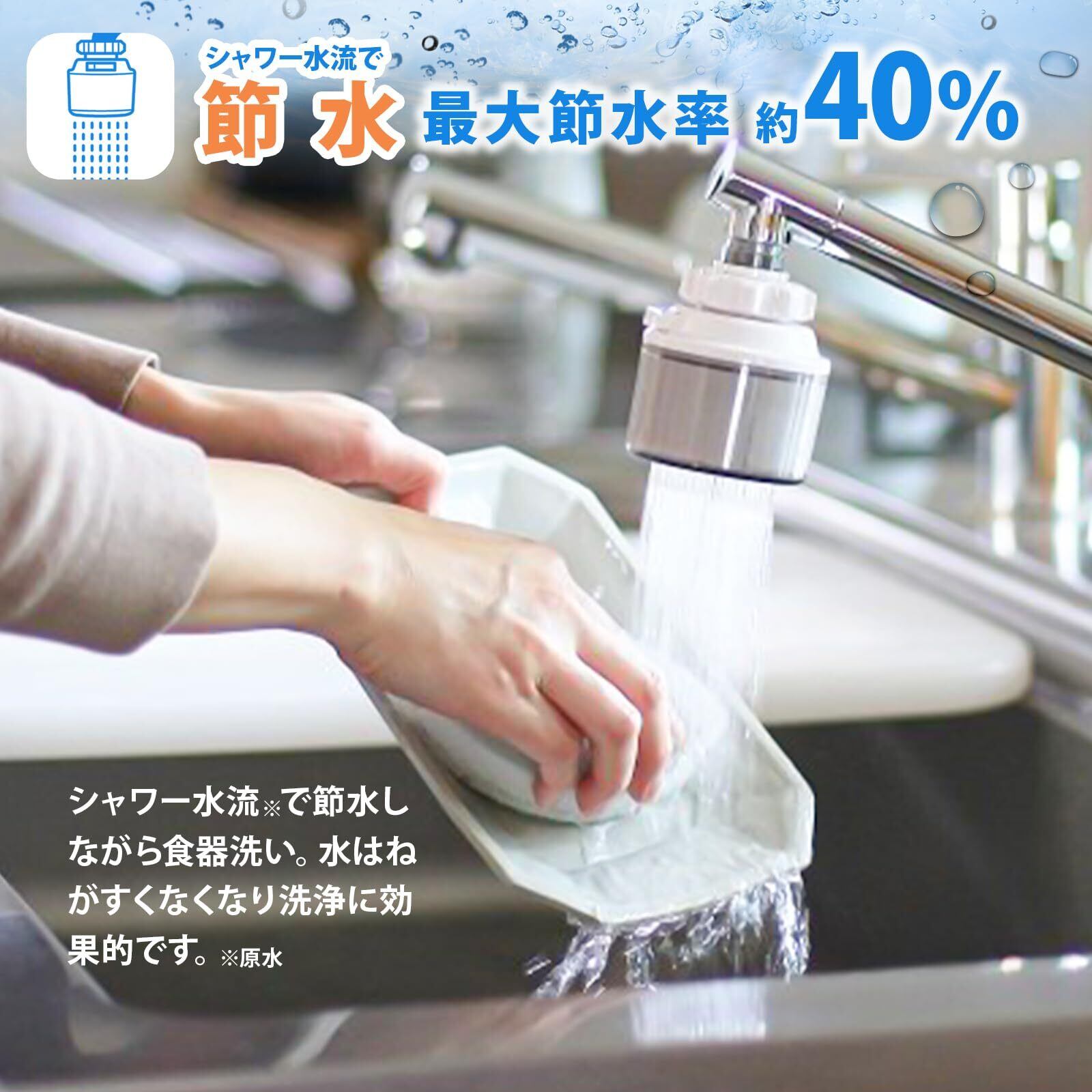 シャワー切替で洗い物に大変便利。最大で約40%の節水効果が期待できます。