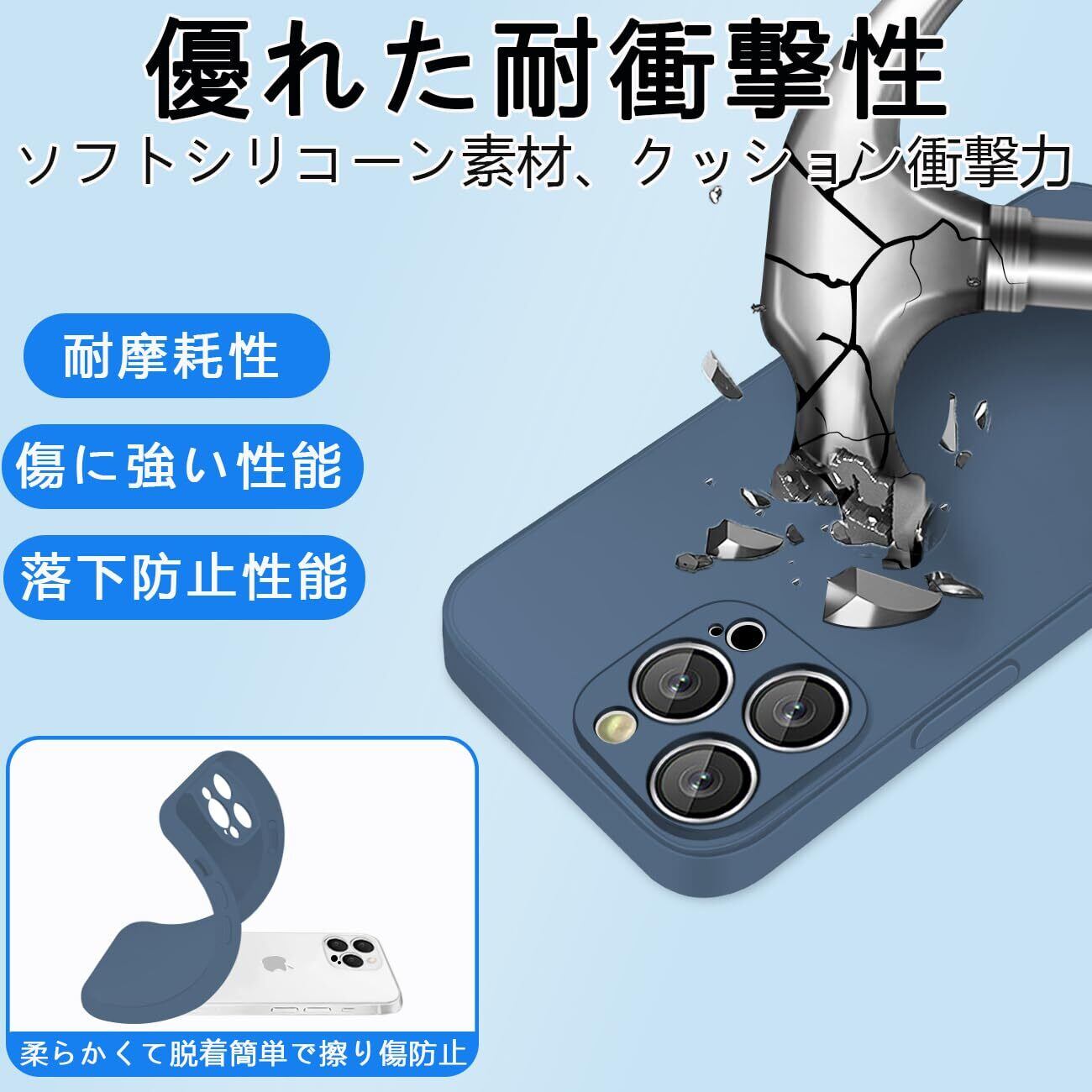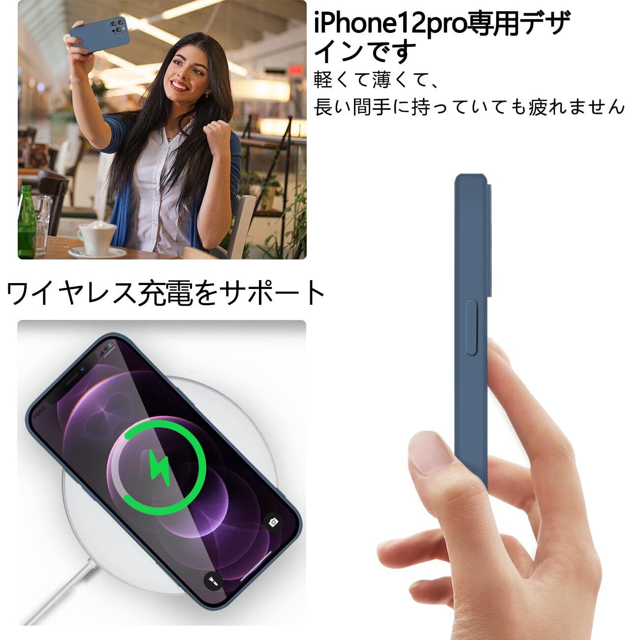 iphone 12pro ケース シリコン 耐衝撃 滑り止め スマホケース 米軍MIL規格 SGS認証 指紋防止 カバー アイホン 12プロ ケース 衝撃吸収 カメラ保護 携帯ケース ソフト 薄型 ワイヤレス充電対応 12pro ケース 6.1インチ用(ブルー)