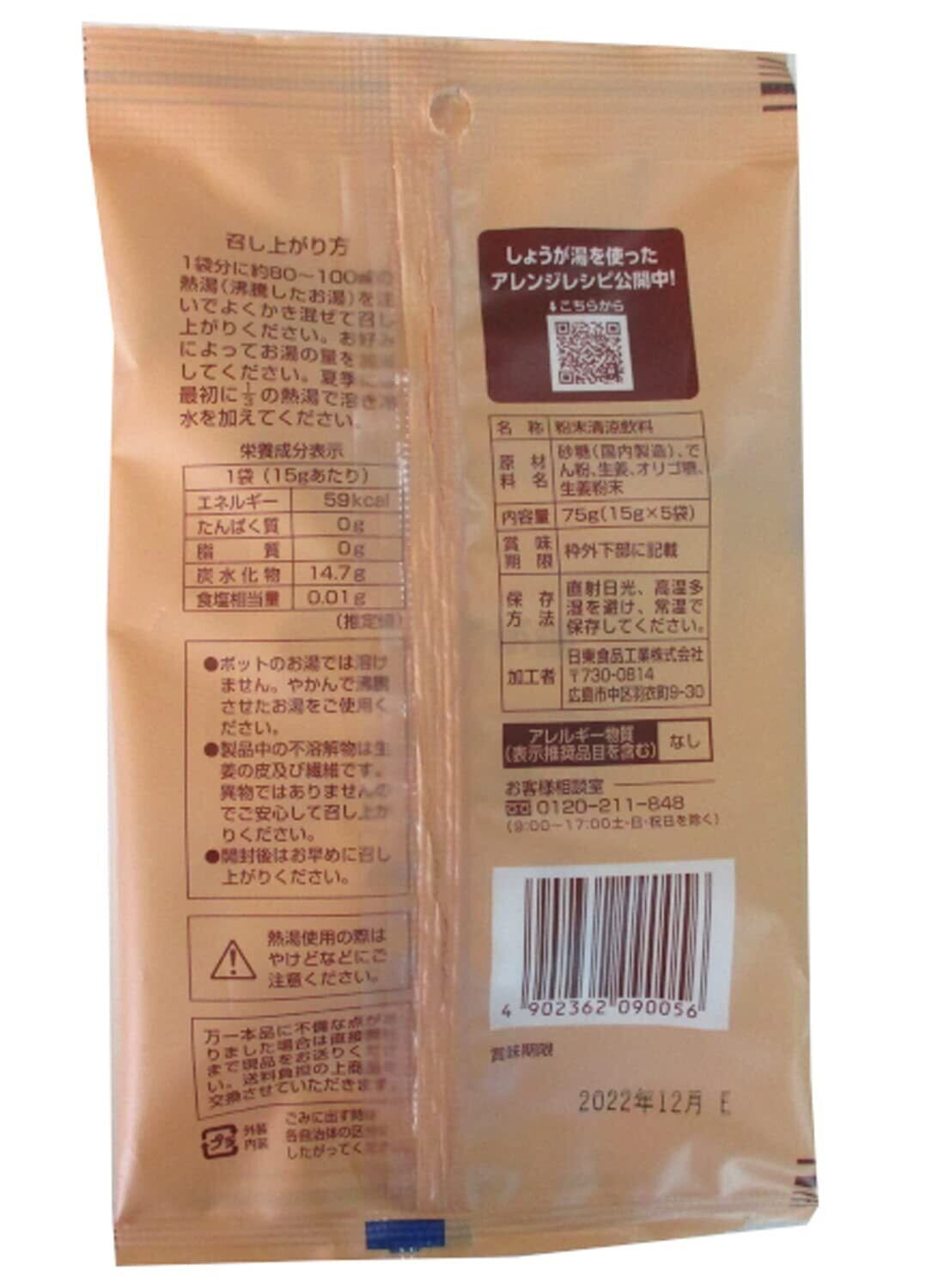 日東食品工業 しょうが湯 75g×5個