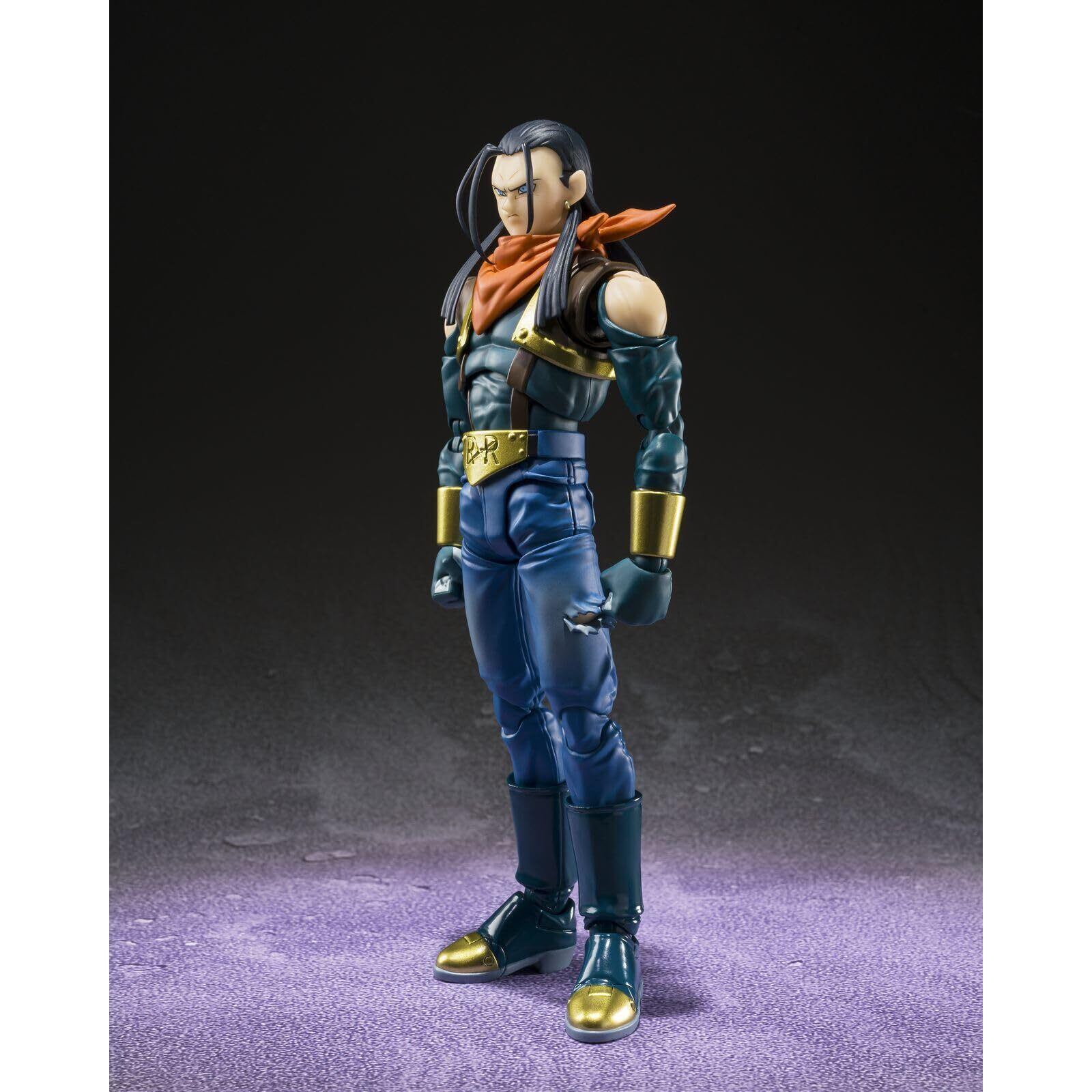魂ネイションズがS.H.内でプレゼント。 スーパーアンドロイド17のフィギュアーツバンダイプレミアムフィギュア サイズは15cmで、アニメ「ドラゴンボールGT」のキャラクターを基にしています。 手4組、追加の表情(叫び声、歯を磨く、笑顔)、交換可能なヘアパーツ、地獄のような球体効果が含まれています。 さらに、孫悟空GTフィギュア(別売)用の追加ヘッド1個、ドラゴン拳エフェクトパーツ、ドラゴン拳エフェクトピース用スタンド1個も含まれています。