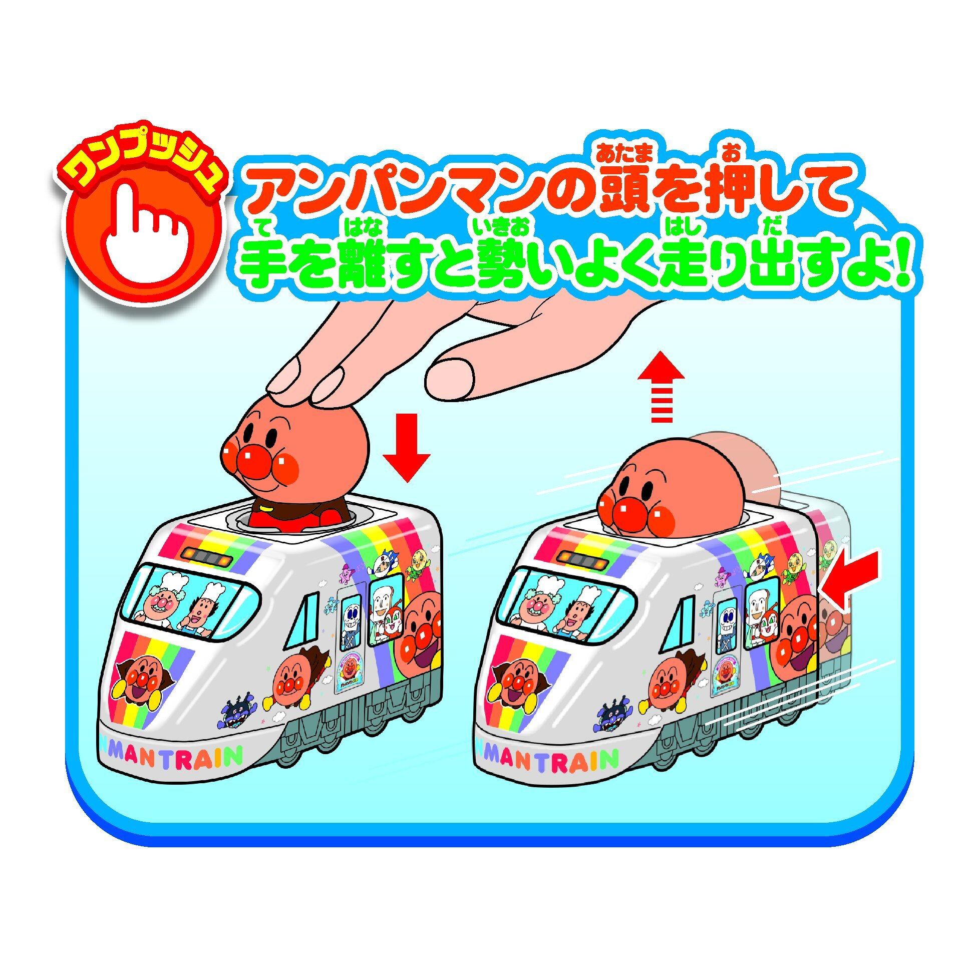 アンパンマンの頭を押して手を離すと、勢いよく走り出す