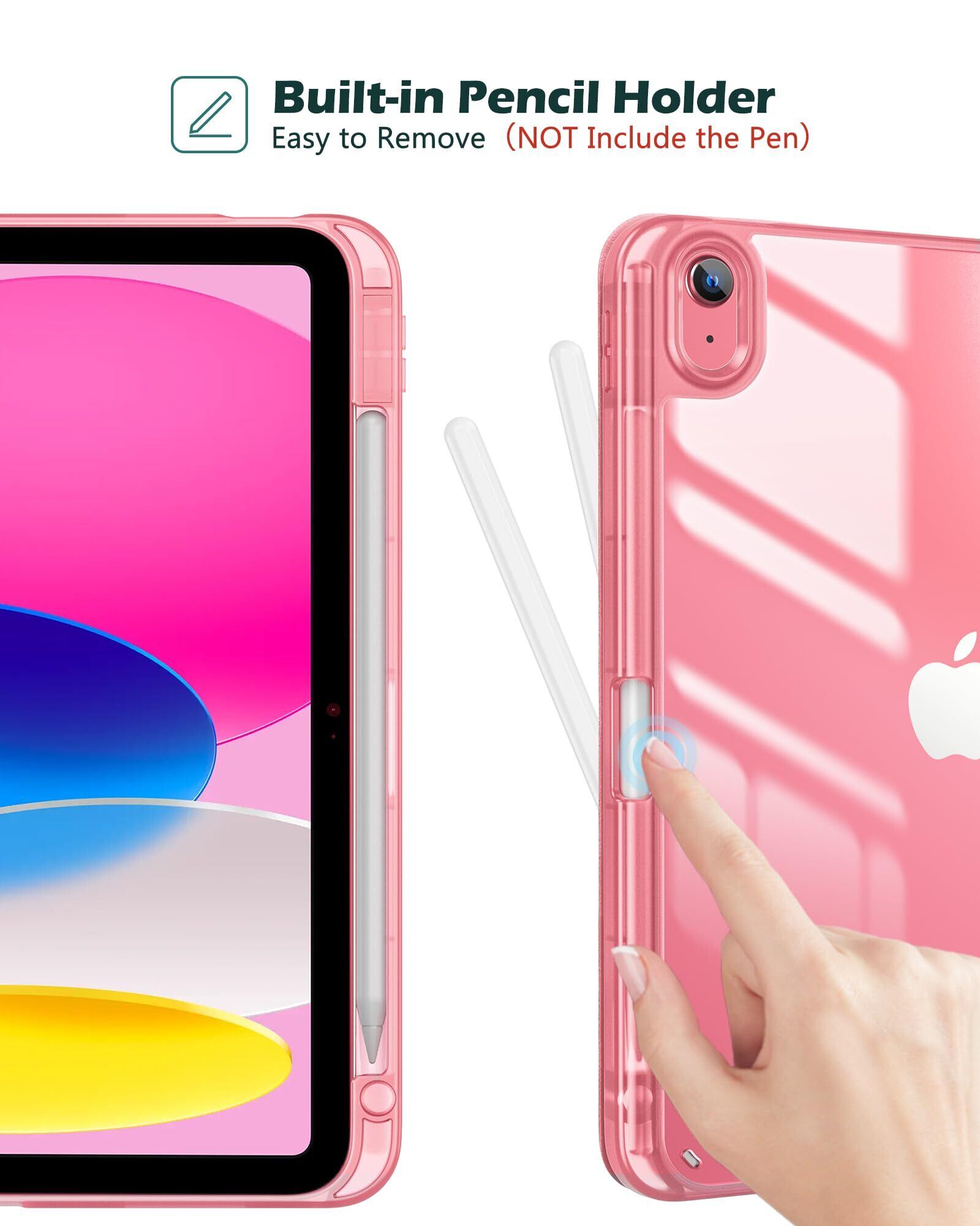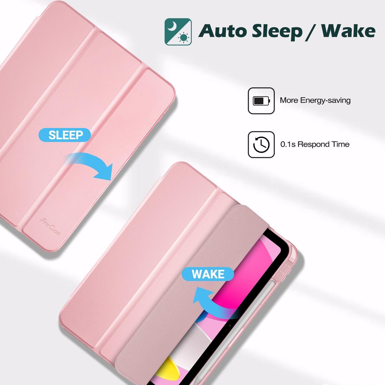 ProCase iPad 11世代/10世代 ケース iPad(A16)11インチ 2025/10.9インチ 2022通用 A2696 A2757 A2777 ペン収納 耐衝撃 三つ折り スタンド スマートカバー (ライトピンク)
