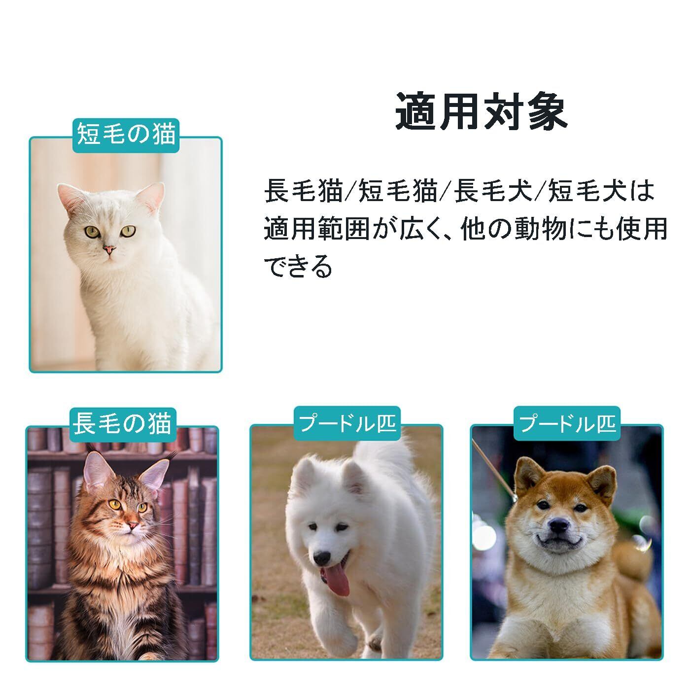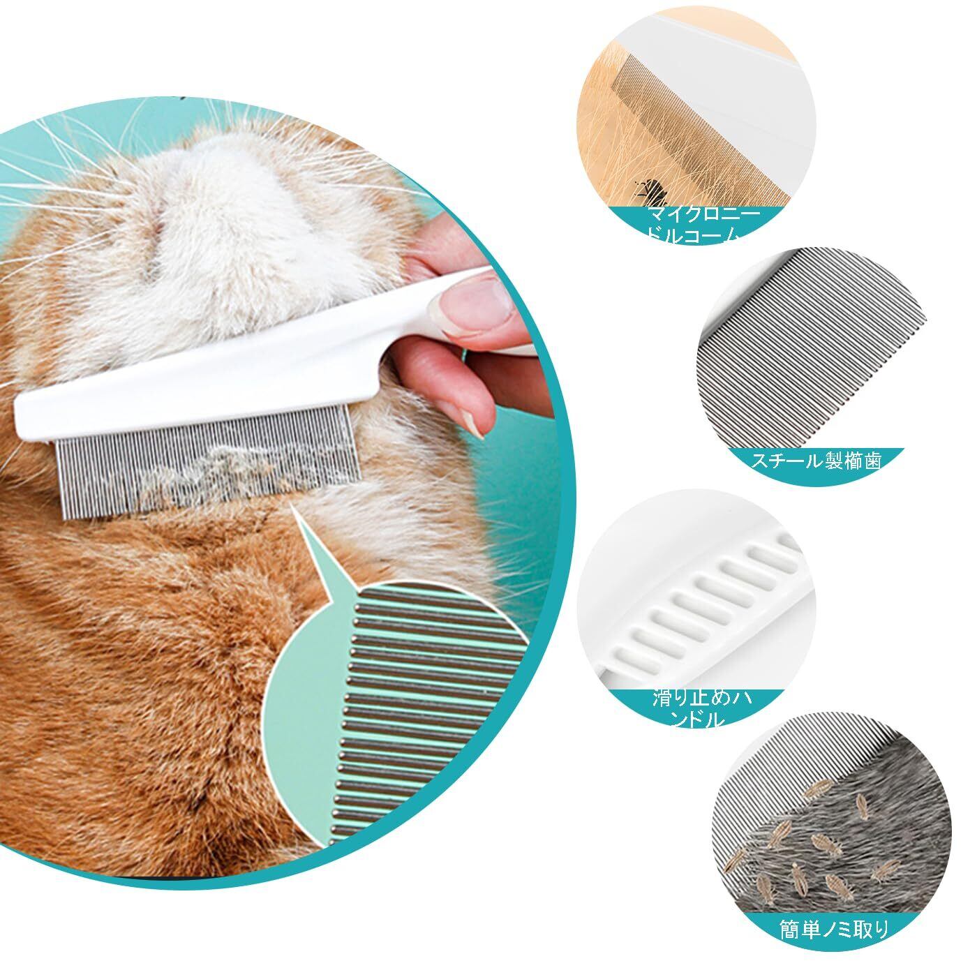 【適用対象】:猫、犬、小型ペットに適しています。櫛歯のデザインが細かいので、ペットの肌に過度なストレスを与えないように、使用時には優しく梳いてください。