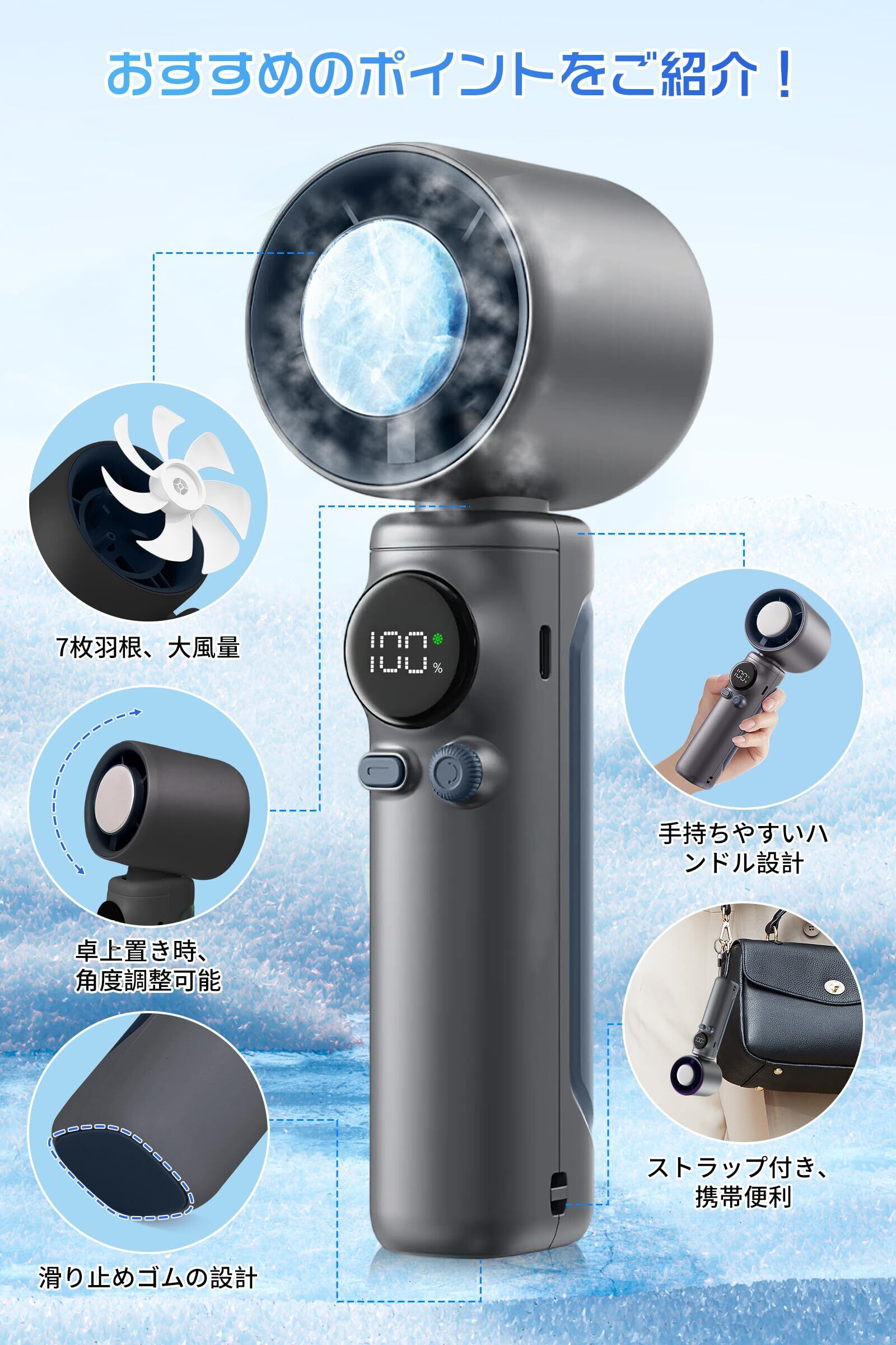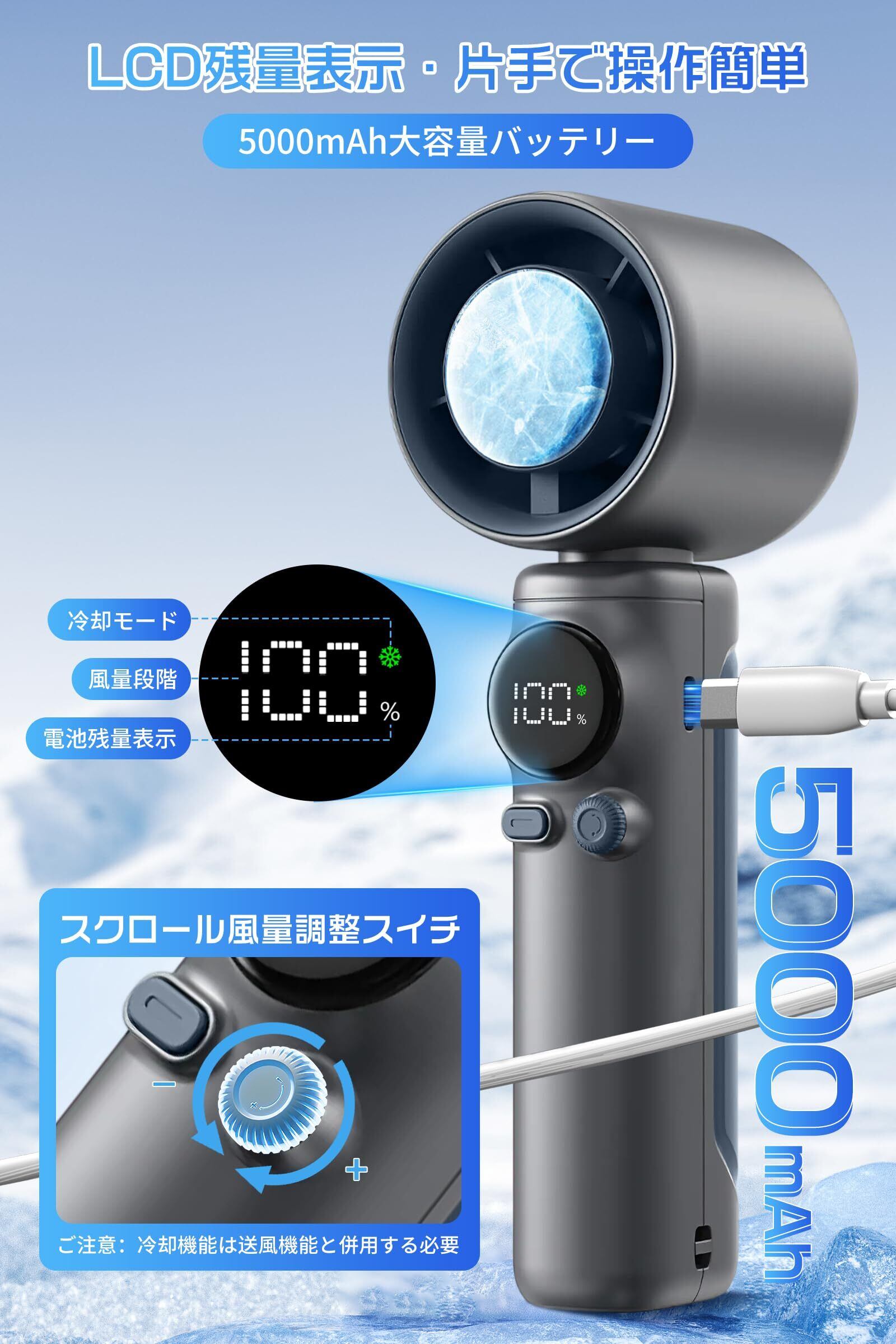 Zabapure ハンディファン 冷却プレート手持ち扇風機 【1-100段階風量調整&1秒冷感】超高速モーター強力送風 7枚羽根 USB充電式 5000mAH大容量バッテリー内蔵 LCD液晶ディスプレイ残量表示 大風量 静音 長時間持続使用 軽量&ミニサイズで携帯便利 ストラップ付 熱中症対策 夏 暑さ対策グッズ 外出/通勤/室内/アウトドアに最適 母の日 父の日 ギフト プレゼント