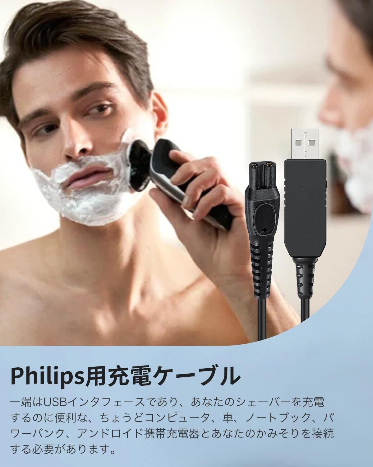 [YAJOJO] フィリップス シェーバー 対応 USB 充電ケーブル Philips 交換用充電コード フィリップス A00390 電動シェーバー Norelco Oneblade QP2520 QP2515 QP2620 シリーズ 対応 充電ケーブル 電動シェーバー 互換 充電器 高耐久 便利性 長さ100CM 4.3V【1本】