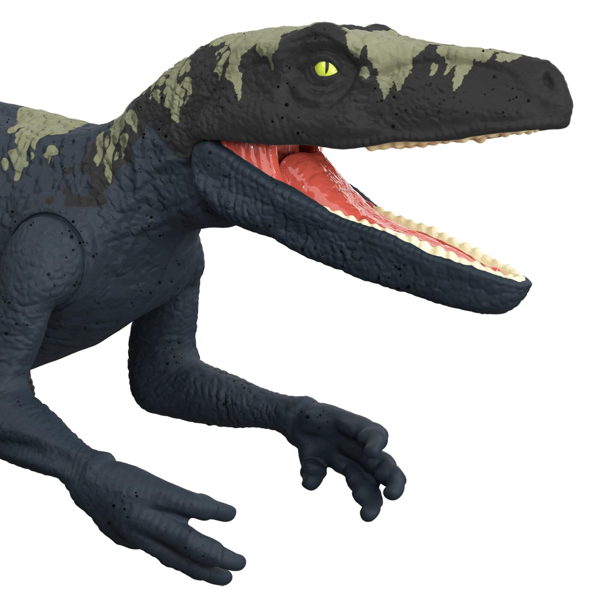 【内容】からだのボタンを押すとダメージが光ってほえるヘレラサウルスのリアルな見た目のフィギュア。ダメージは3段階で与えることができ、異なる声でほえます。フィギュアと連動する無料アプリ「ジュラシック・ワールド・プレイ」に対応しており、DNAコードをスマートフォンでスキャンすることで恐竜をコレクションできます。