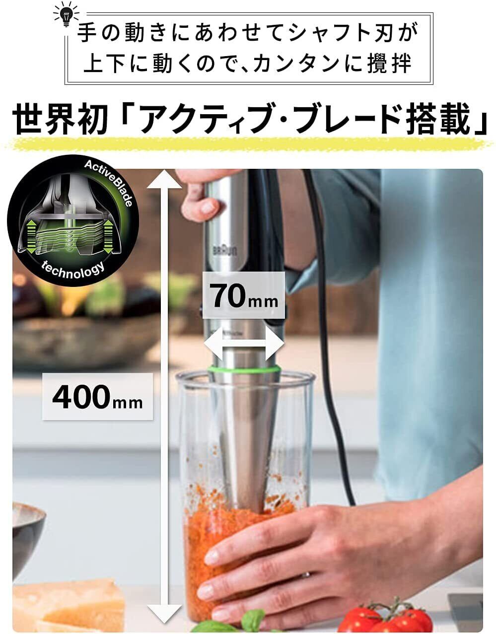 ブラウン ハンドブレンダー マルチクイック7 MQ7030XG 簡単操作 時短 離乳食 下ごしらえ スムージー スープ つぶす 混ぜる きざむ みじん切り 大根おろし 1台4役 ハイパワー400W お手入れ簡単 食洗機 ドイツ設計 直感操作 500mlチョッパー