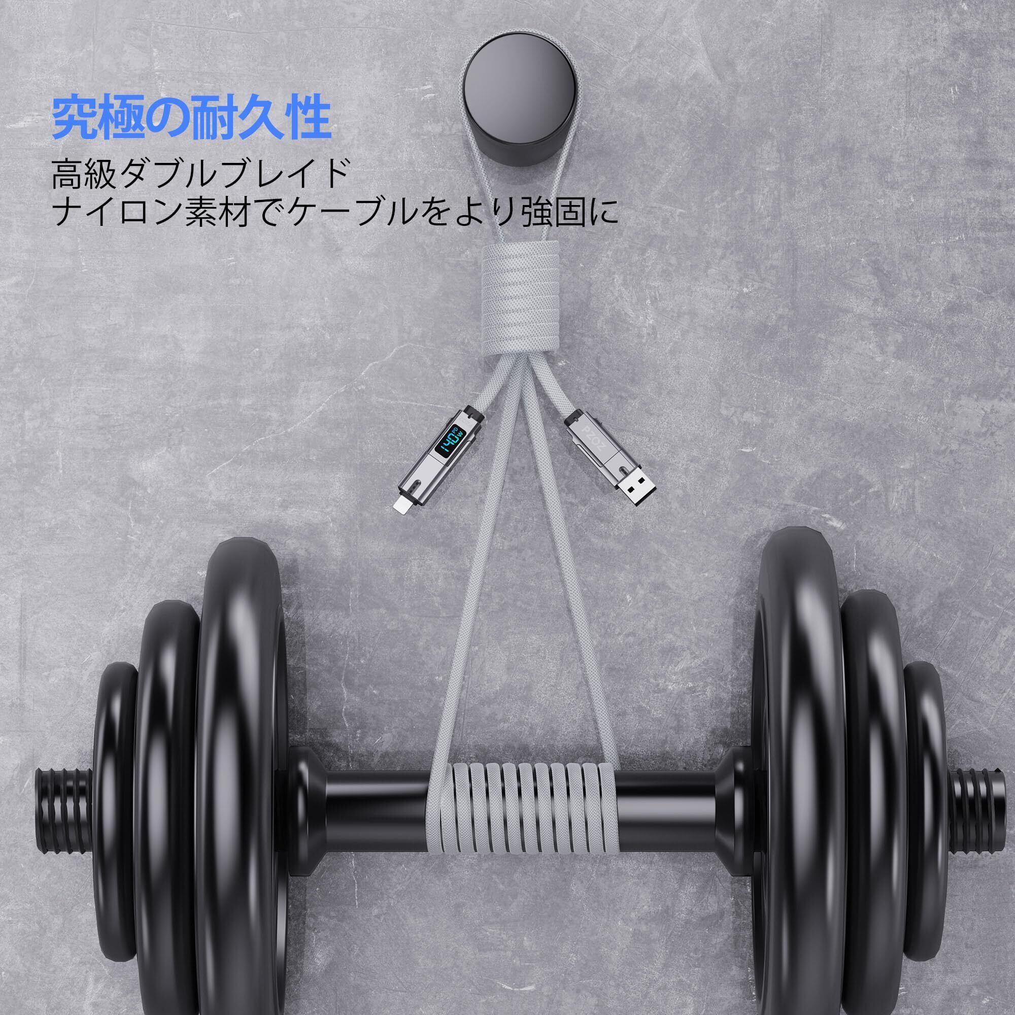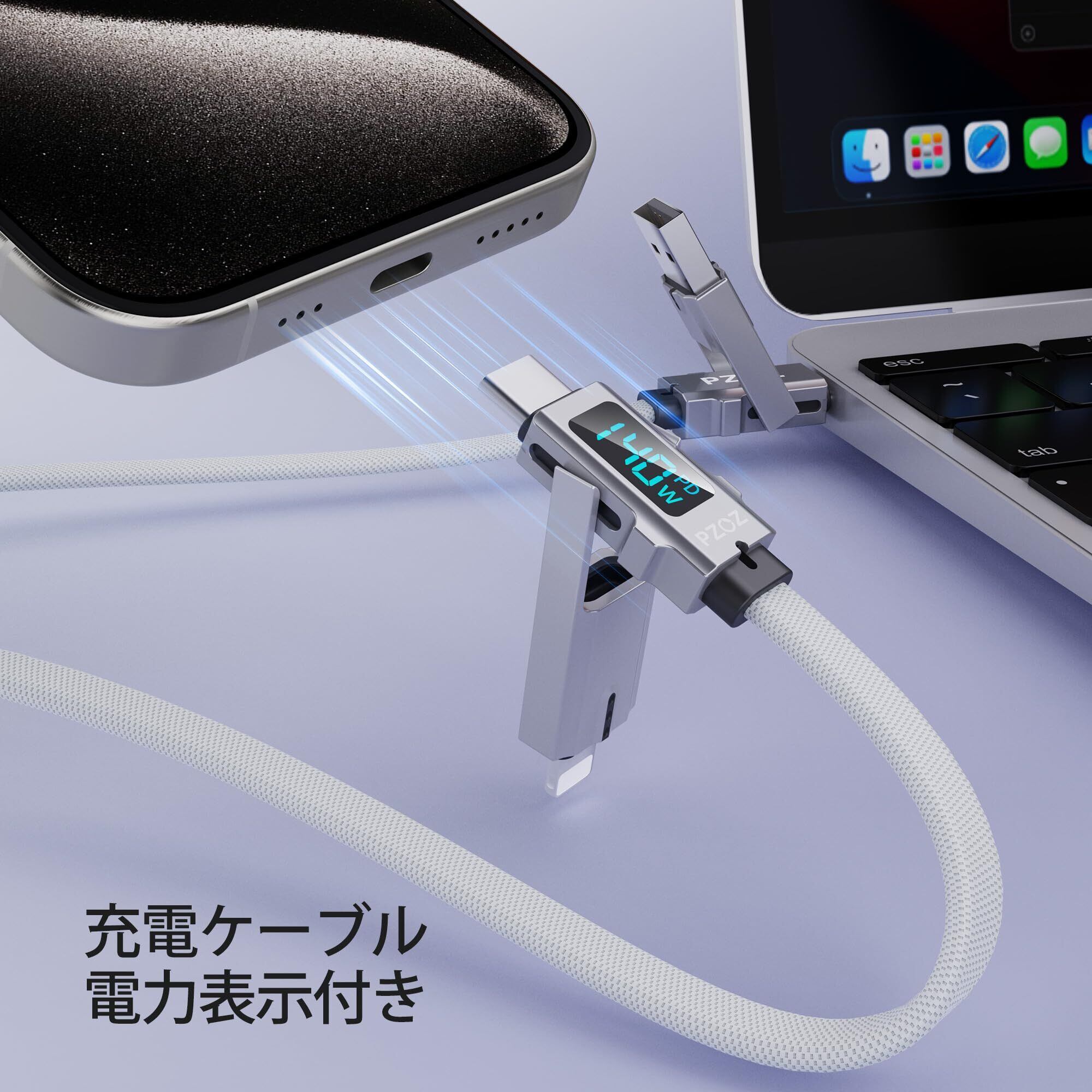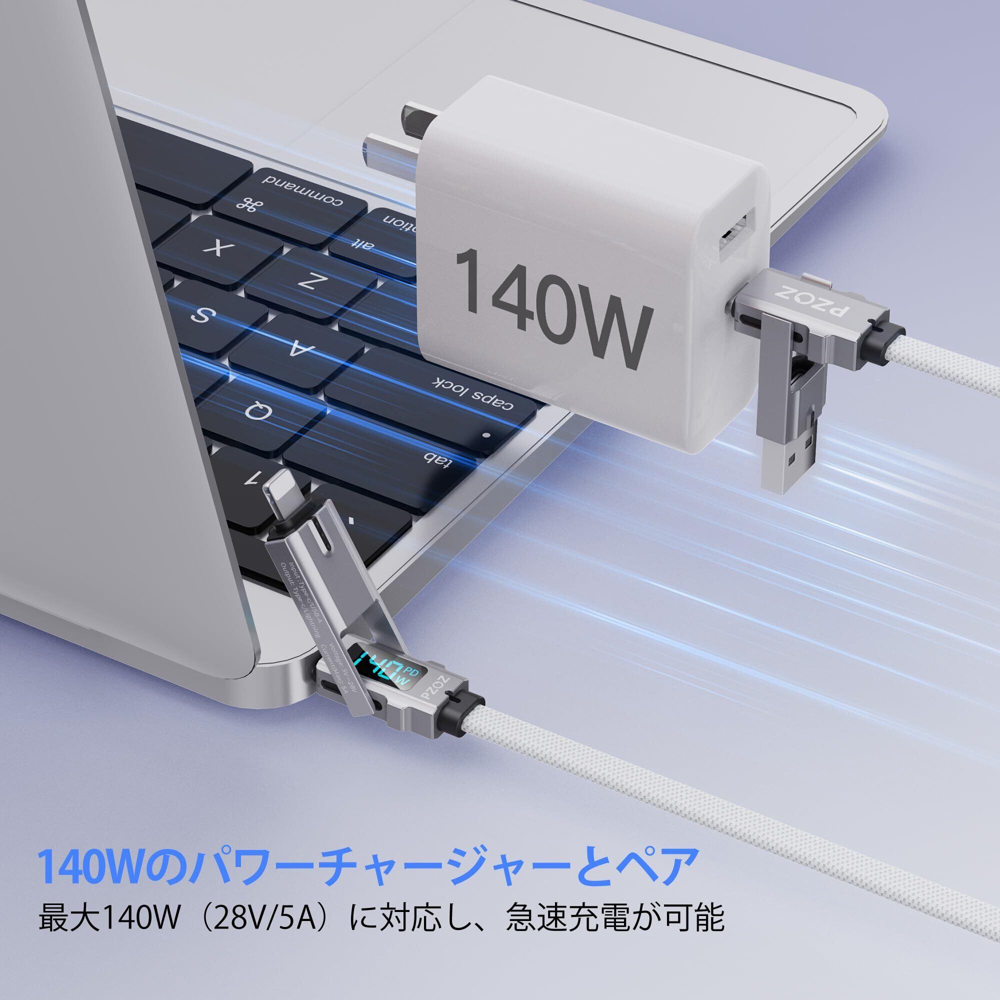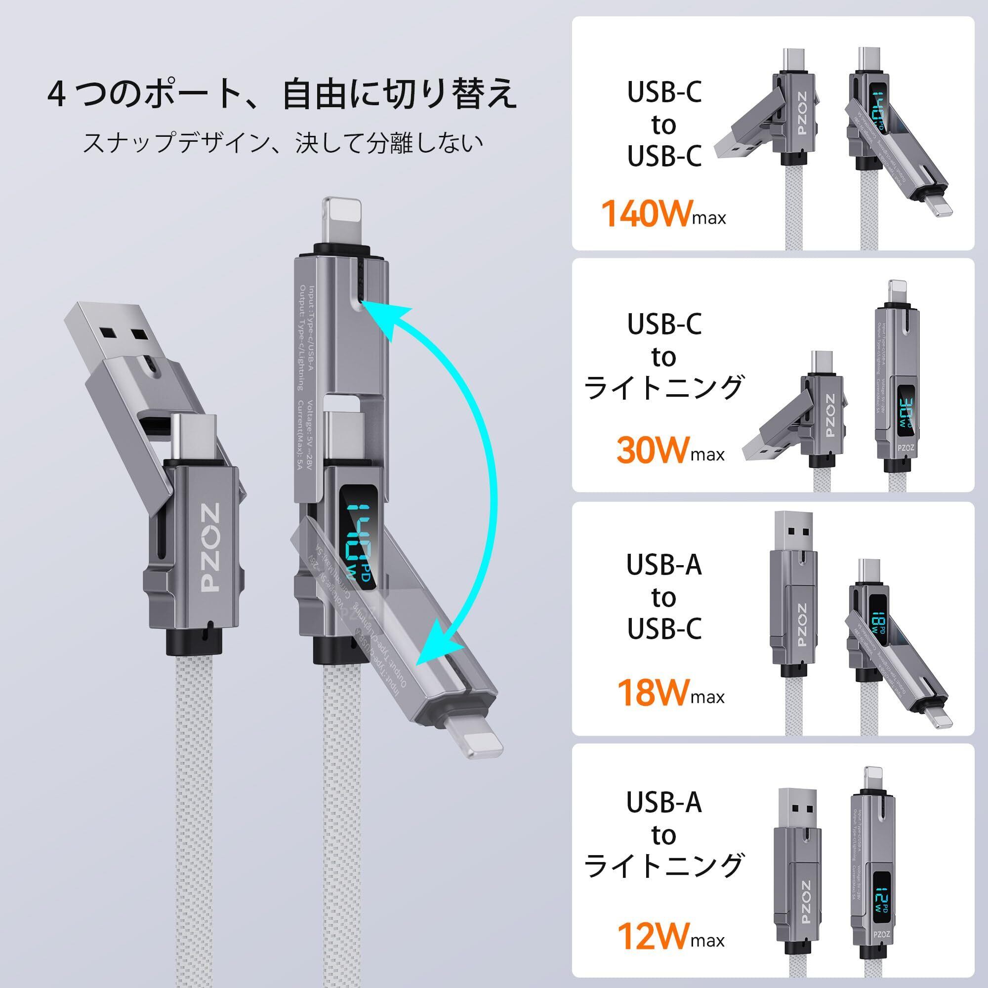 PZOZ 充電ケーブル 4in1 LEDディスプレイ 最大対応140W ケーブル USB C to USB C/タイプc to ライトニング/USB A to USB C/USB A to Lightning 5A 急速充電 PD Macbook/iPhone/iPad/Samsung Galaxy/Google Pixel/Switch 対応