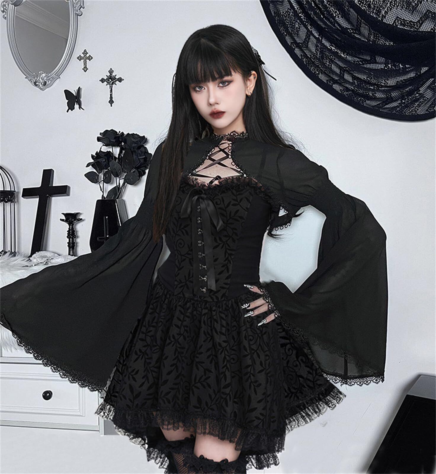 【商品内容】キャミソールスカート+ブラウス (2点セット) ゴシックスタイル:このゴスロリワンピースは、ゴシック風のデザインで仮装パーティーやイベントに最適です。
