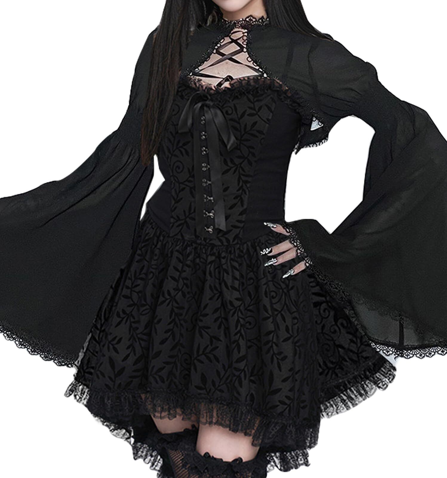 [Qichenk] ハロウィン コスプレ レディース ワンピース ゴシック レース ドレス コスチューム 仮装 衣装 魔女 吸血鬼 小悪魔 大人 パーティー イベント クリスマス