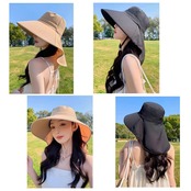 【日焼け対策】この帽子は、ポリエステル素材を使用しています。広いつばので360°しっかり日差しを遮ります。後ろのつばを長めに設計しているので、首までしっかりUVカット。