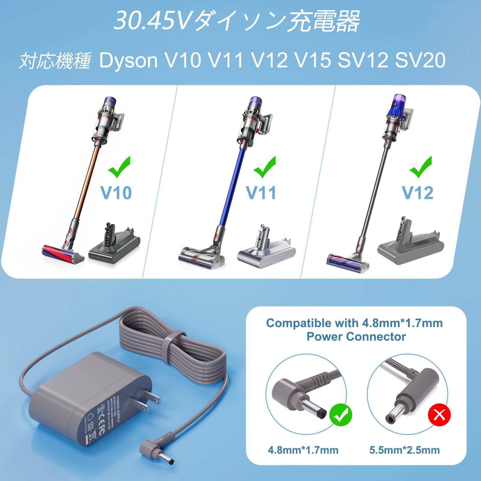 【30.45V ダイソン 充電器対応機種】Dyson Cyclone V10 V11 SV12 Motorhead vacuum cleaner, Dyson Cyclone V10 V11 V15 Animal,Dyson Cyclone V10 V11 SV14 Absolute,Dyson V11 Torque Drive (Nickel/Blue), Dyson Cyclone V12 V15 S11 SV12 SV14 SV16 SV20 SV22 dyson 掃除機,互換品番P/N : 217160-02,217160-03,969350-02,969350-05,969042-01, 368340-01, 36936601, 36867801交換用充電器 ACアダプター