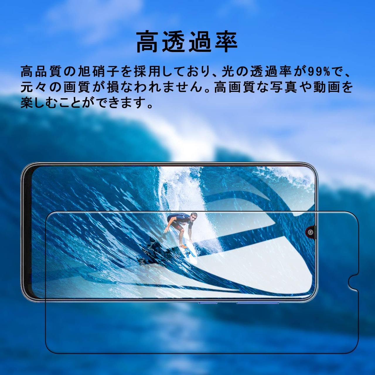【ガラス素材】AGC旭硝子社の素材を採用しております。ガラスフィルムの硬度は9Hに達し、高い耐落下性、耐スクラッチ性、耐衝突性。