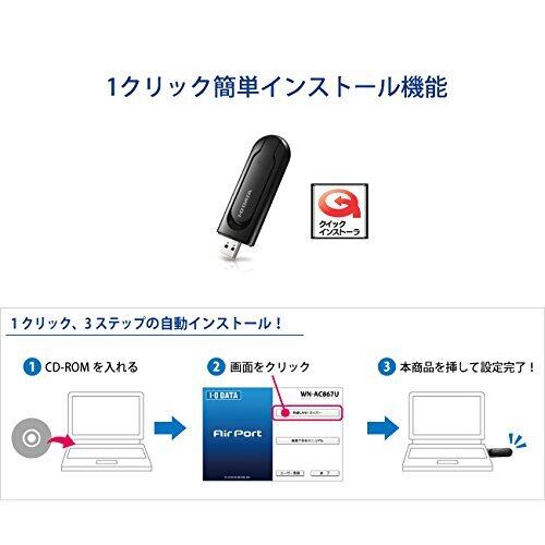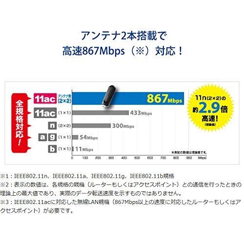 アイ・オー・データ Wi-Fi 無線LAN 子機 11ac/n/a/g/b 867Mbps/WPA3対応/USB3.0/Wアンテナ内蔵/可動アンテナ搭載 日本メーカー WN-AC867U