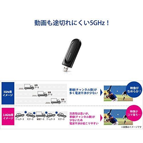 電波干渉を受けにくい5GHz帯にも対応し、867Mbps通信に対応の無線LAN親機との接続で高速かつ安定した通信を実現します