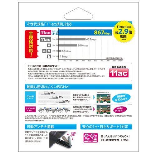 [スピード] 867Mbps(11ac)、300Mbps(11n)、54Mbps(11a,11g)、11Mbps(11b)