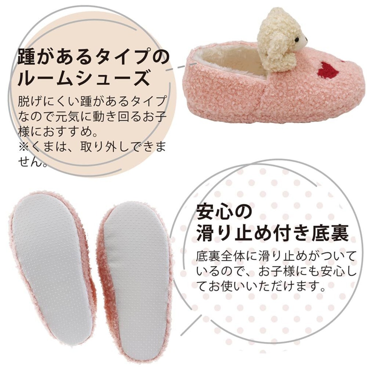 KIDS' ROOM SHOES 【踵があるタイプのルームシューズ】脱げにくい踵があるタイプなので元気に動き回るお子様におすすめ。 【安心の滑り止め付き底裏】底裏全体に滑り止めがついているので、お子様にも安心してお使いいただけます。