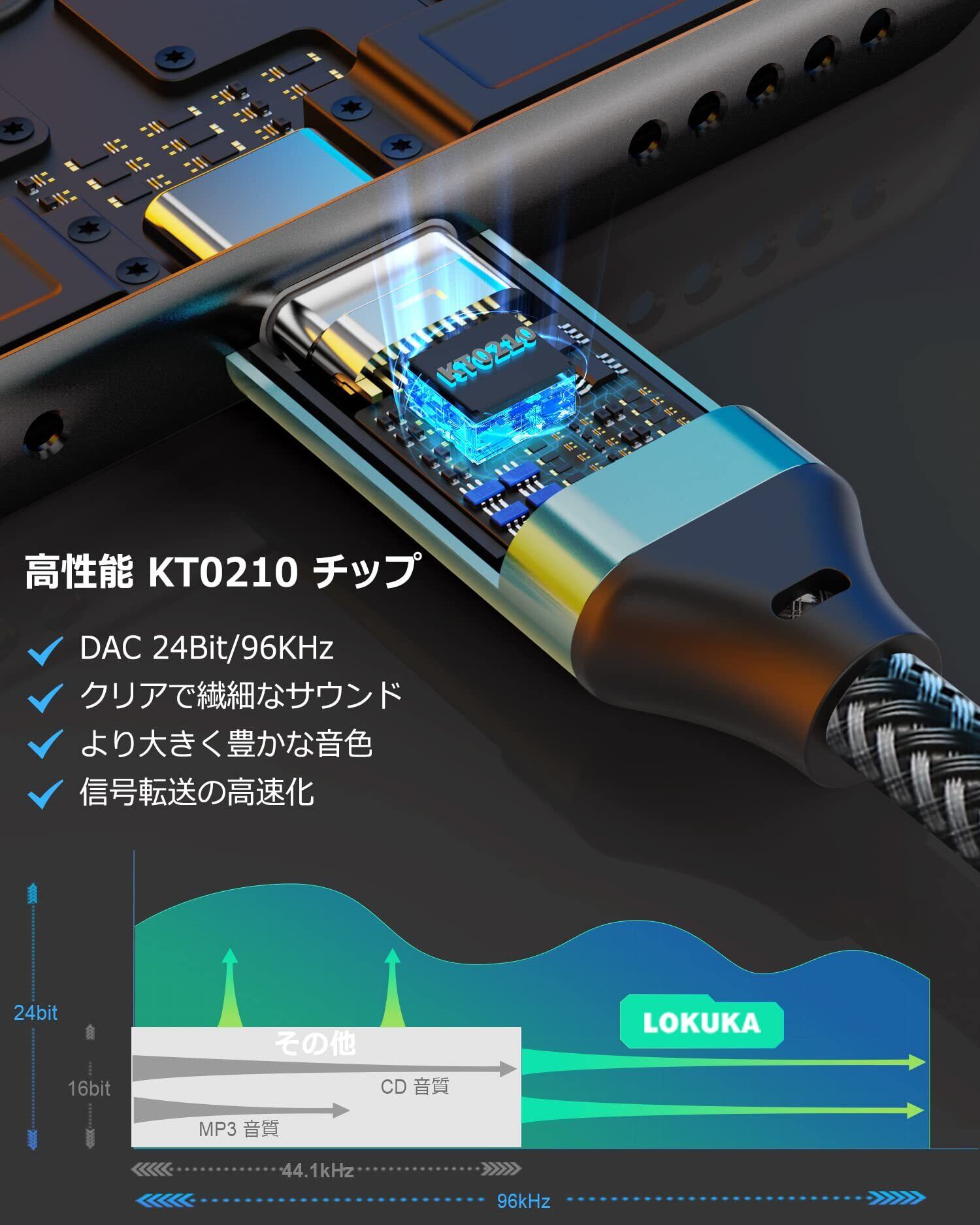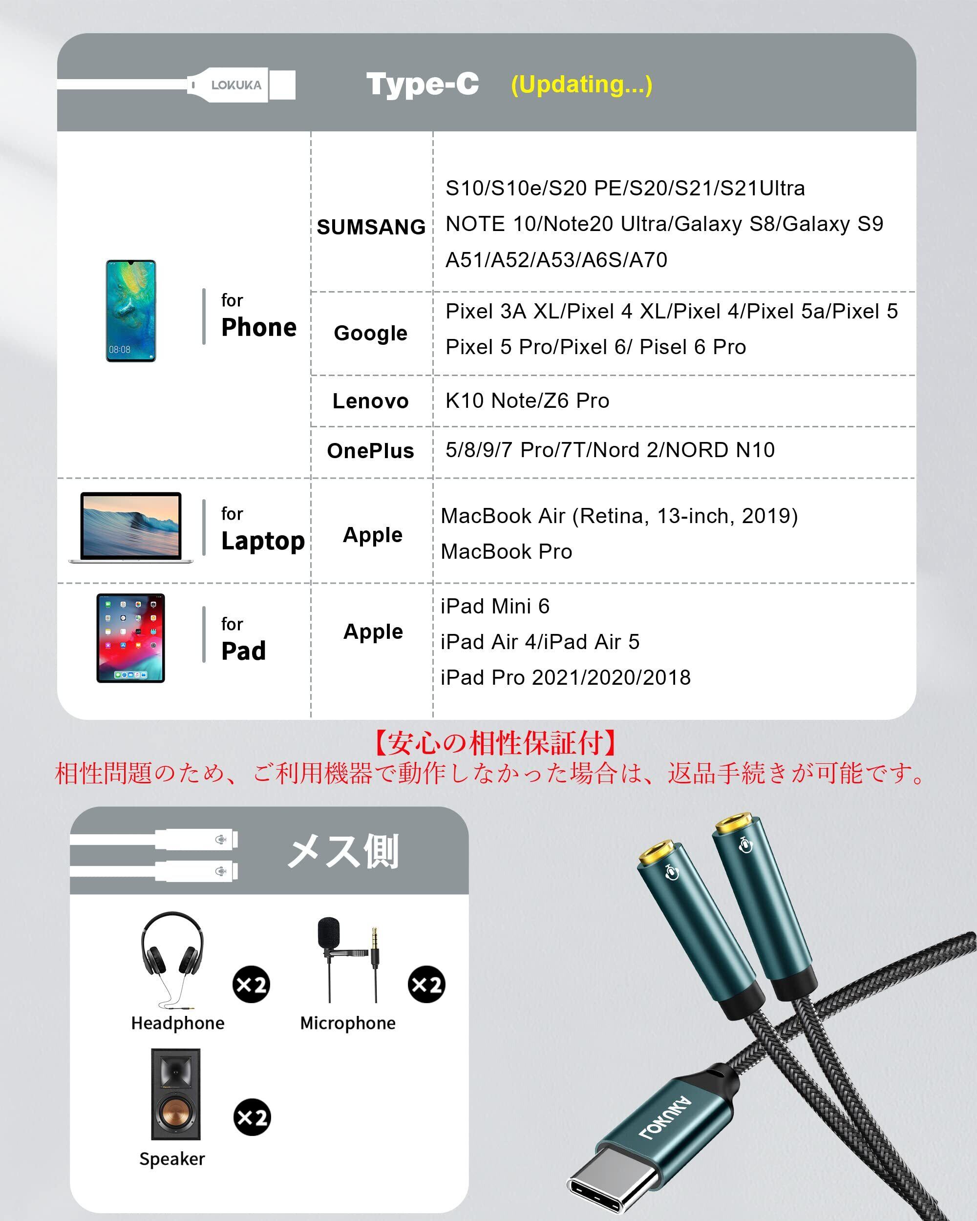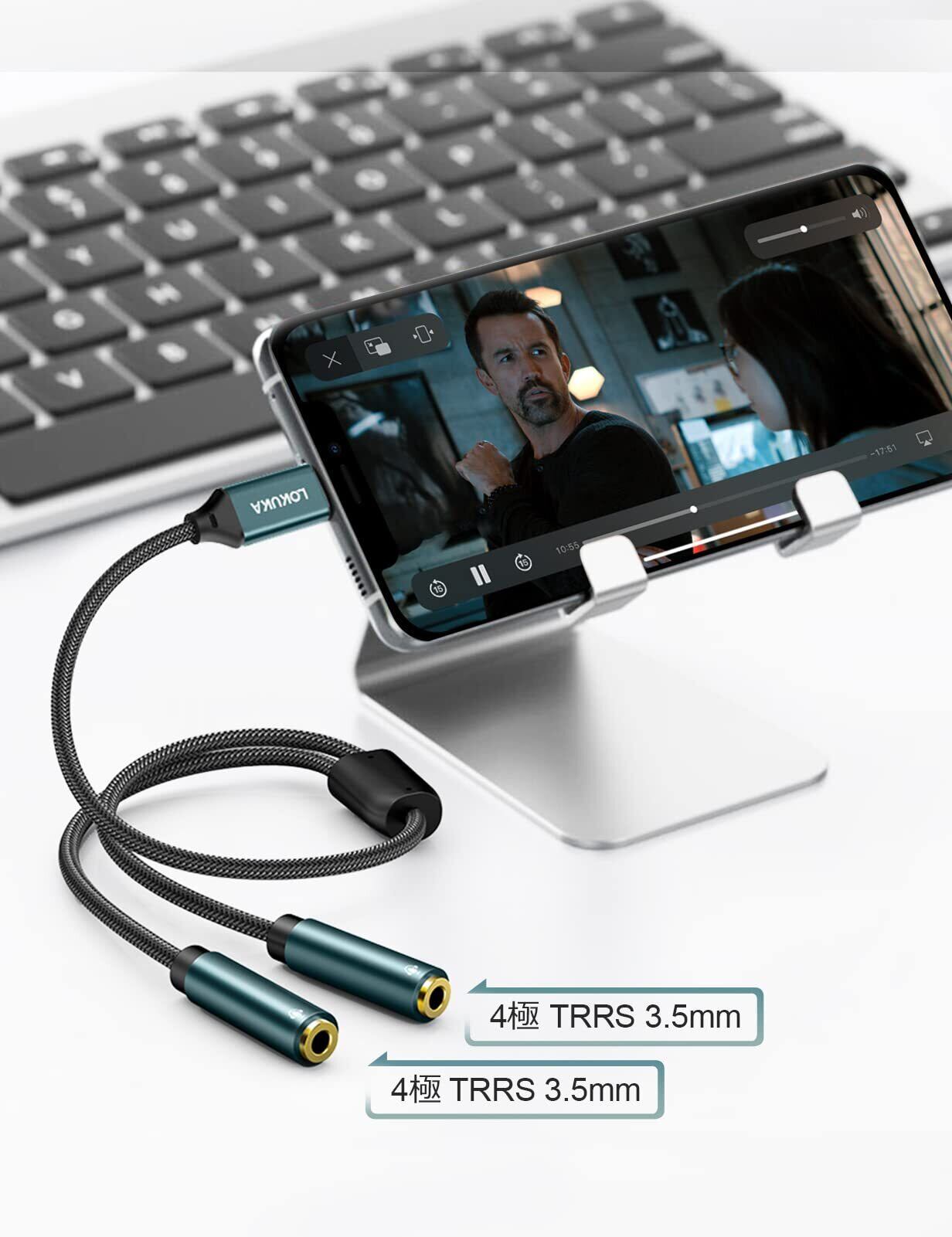 LOKUKA usb c イヤホンジャック 二股 4極 分岐 分配 マイク機能搭載 ボイスチャット DAC搭載 ハイレゾ対応 音楽再生 音声通話 音量調節 type c 機器用 2人用 28cm LC3