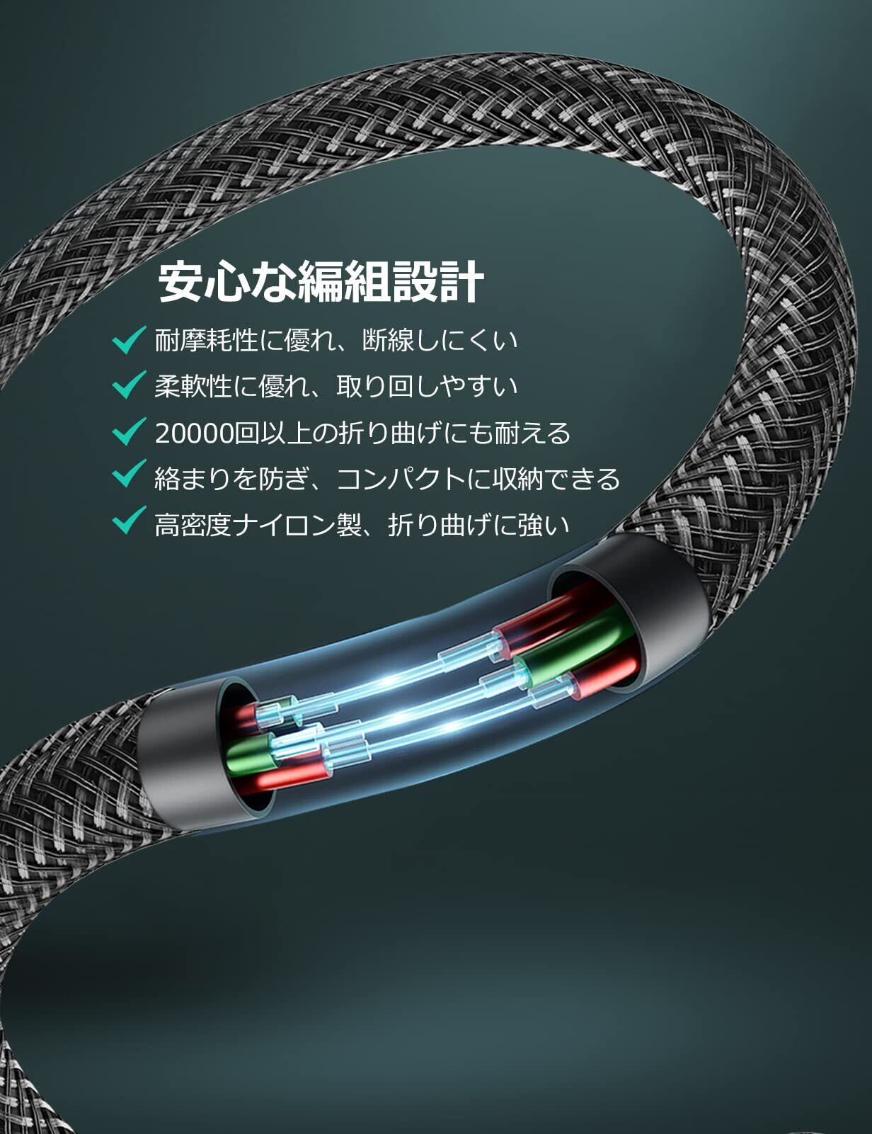 【耐久性】このtype c イヤホン変換アダプタは20,000 回以上の折り曲げテストにも耐える優れた耐久性を実現。外皮には強度・磨耗に強い高強度ナイロンメッシュを使用し、ケーブル表面のキズを防止します。コネクタ根本の部分は、ブッシュエンボスを付け、屈曲による衝撃を和らげて、剥がれや断線などから守ります。