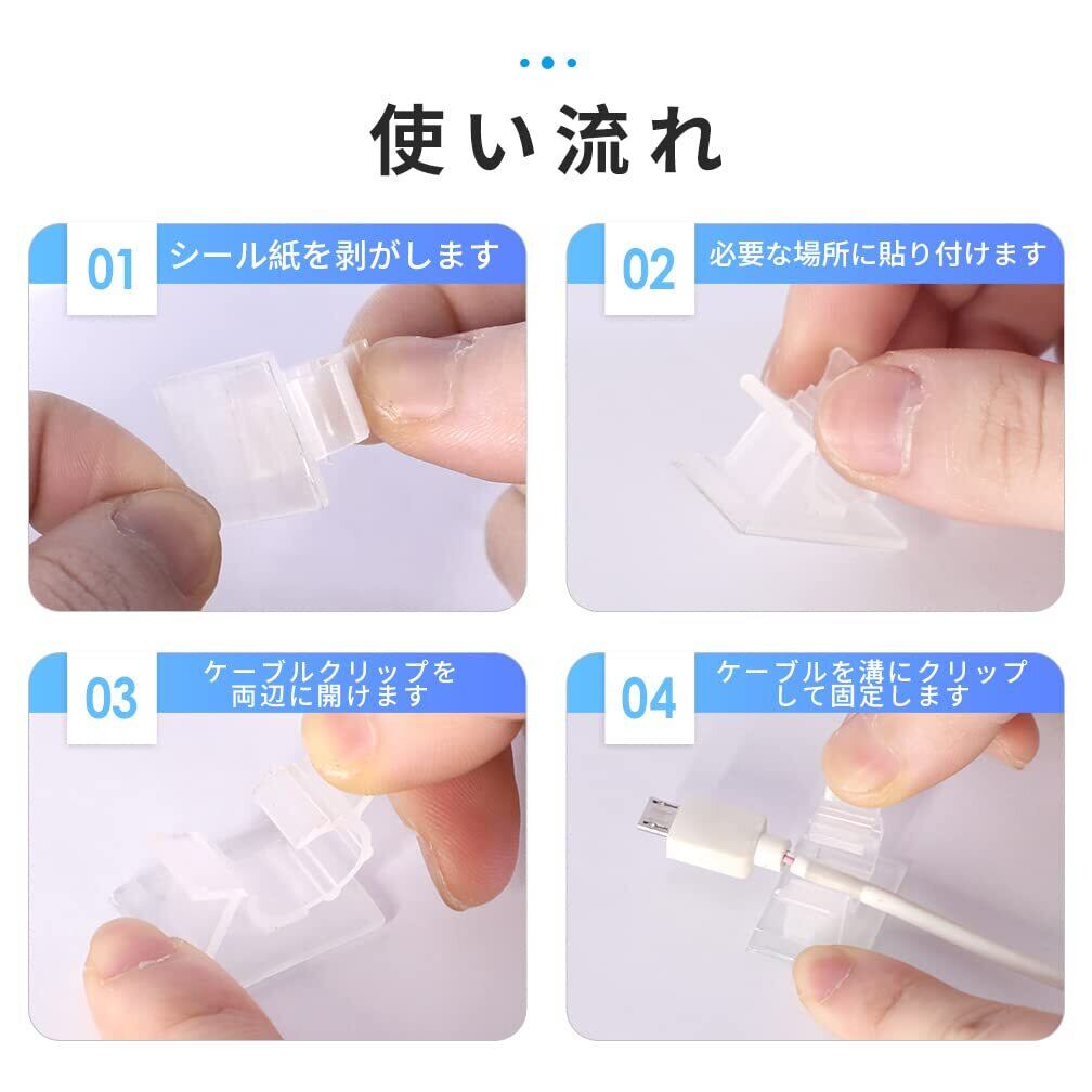 【使用注意】固定位置をきれいにしてください。粘着ケーブルホルダーのシール台紙を剥がして、そのまま必要な場所に貼り付けます。(固定位置に30秒ぐらい押して付着してください。)
