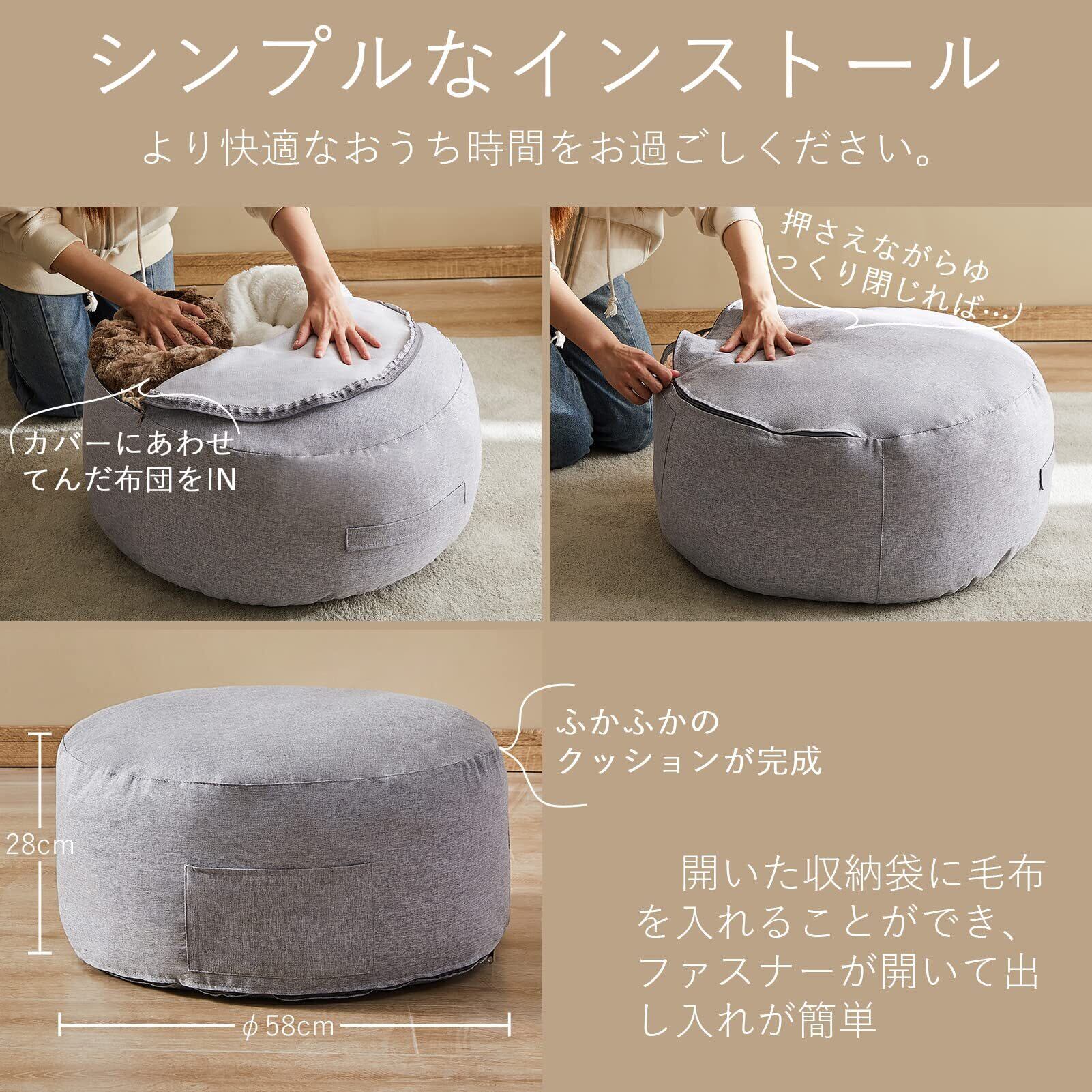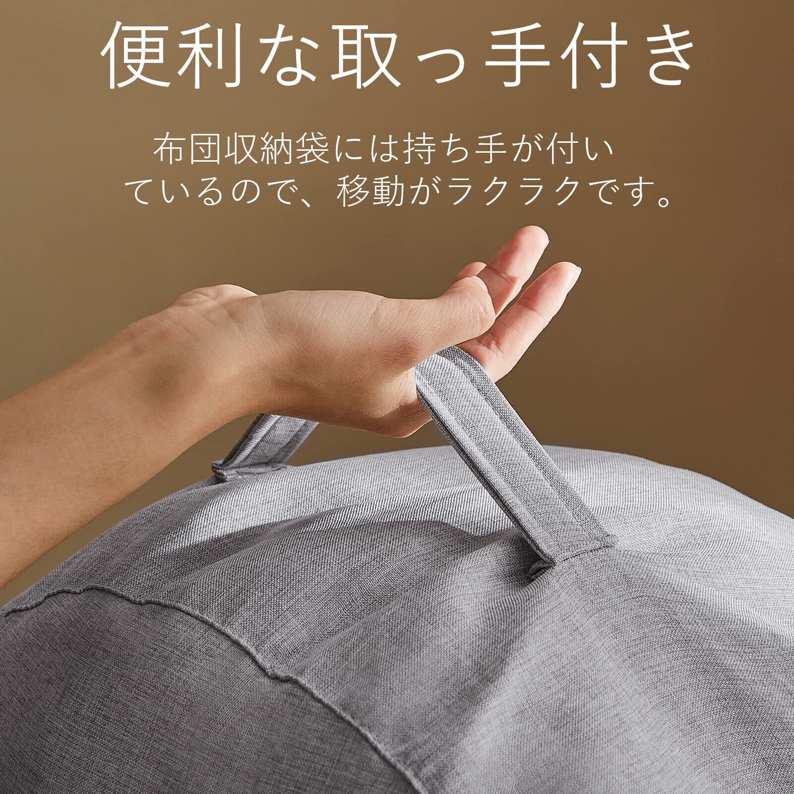 【丸洗いOK】中身を詰めればクッションとしても、オットマンとしても使いやすい。持ち手がついて持ち運びも楽々。洗濯も可能なのでいつでも清潔に保てます。座布団代わりにも、背もたれにもなる布団収納袋。