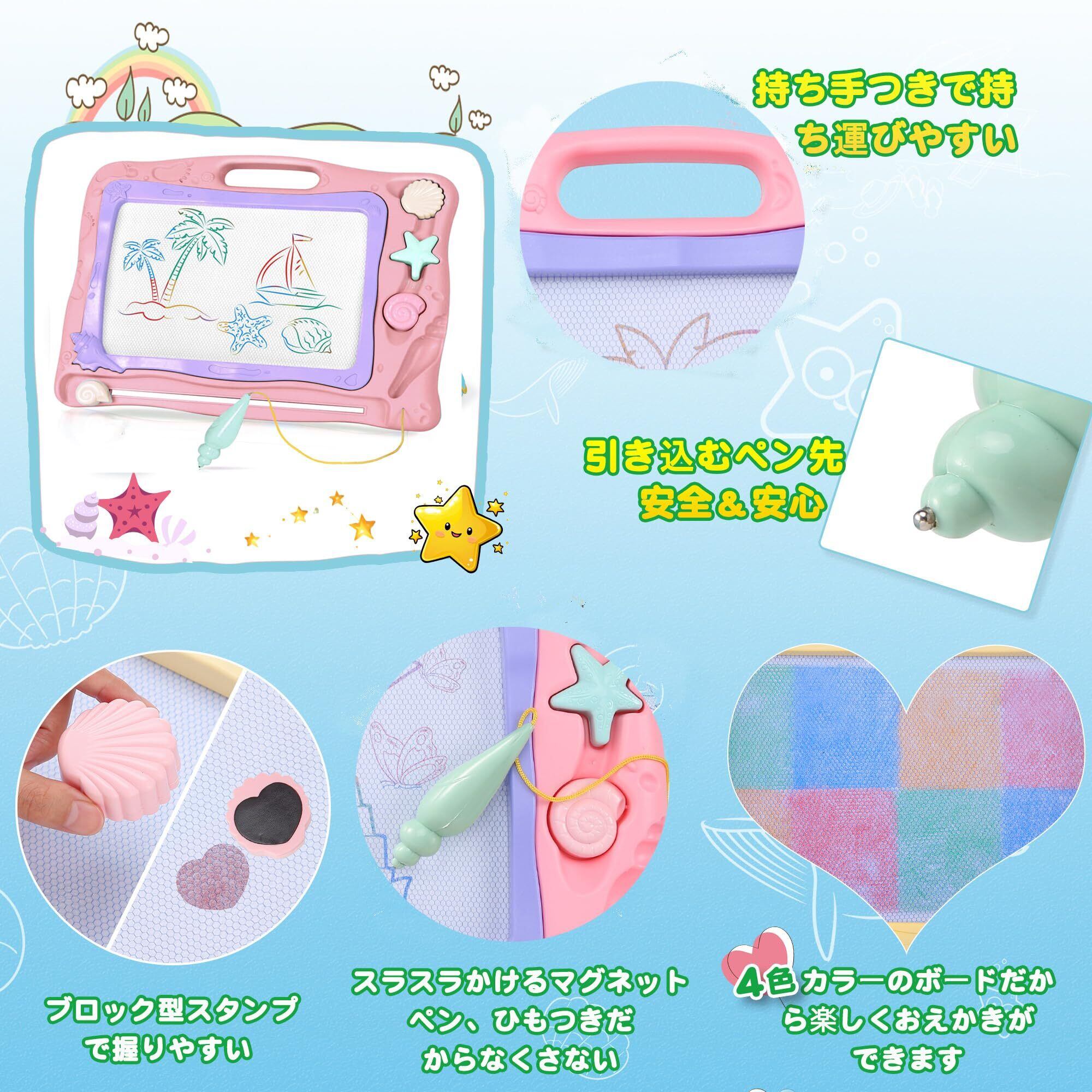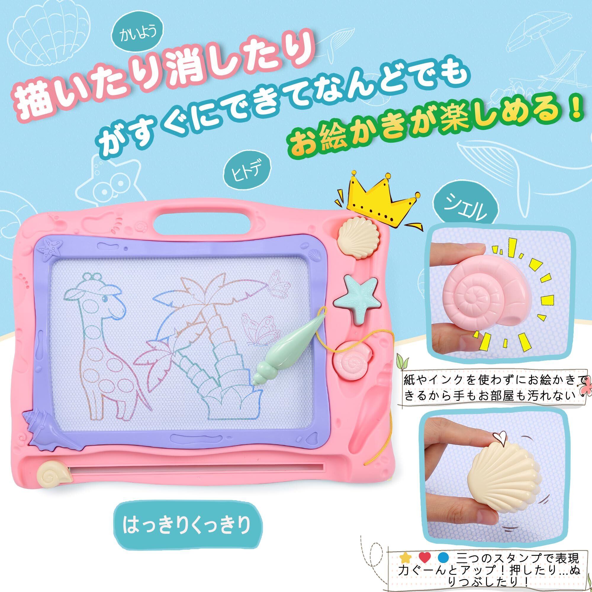 お絵描きボード カラフル おえかきボード Qiqutop おえかき 大きい 40.3*31.2cm 子供 お絵かきボード落書きボード 知育 四色 3 4 5歳 男の子 女の子 誕生日 プレゼント 幼児 おもちゃ マグネットスタンプ付 (ピンク)