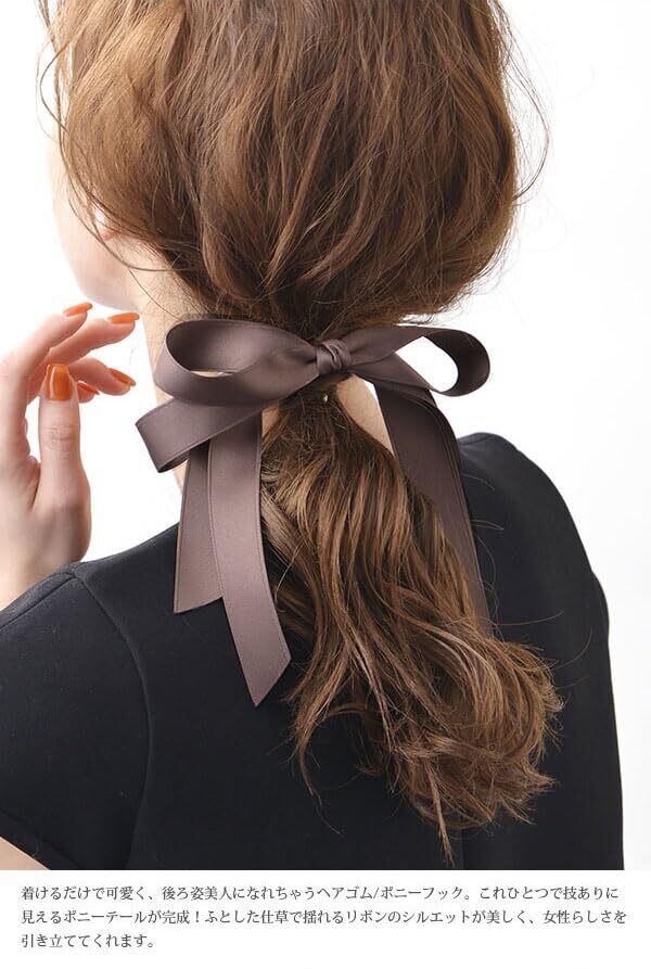 優雅な存在感とフェミニンな雰囲気を漂わせるヘアアクセサリーです。長めのリボンデザインがきれいに流れるように仕上がっており、ポニーテールやシニヨン、ハーフアップ等、様々なヘアアレンジに合わせて使えます。