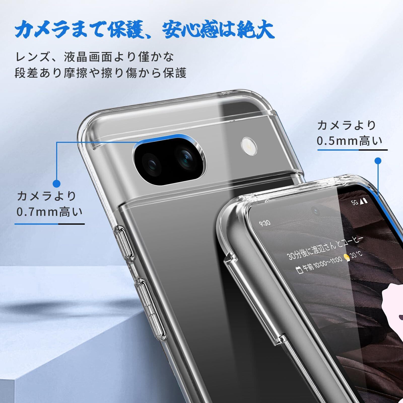 【驚きの透明感】Pixel 8A用ケースの背面は透き通った高い透明度を誇り、フレームは多層メッキ加工技術によって設計。オシャレで独特の輝きを放ち、シンプルで高級感溢れています。8aの美しさはそのままに本体を保護しているのです。そして、これはPixel 8aの指紋認証を完全にサポートします。