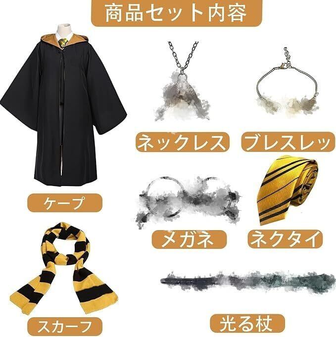 [Yi-gog] ハロウィン グリフィンドール コンプリート ハリーポッター コスプレ 衣装5点セット 7つサイズ コスプレ コスチューム(ローブ + 眼鏡 + ネクタイ + スカーフ+魔法の杖) コスチューム cosplay 男女共用