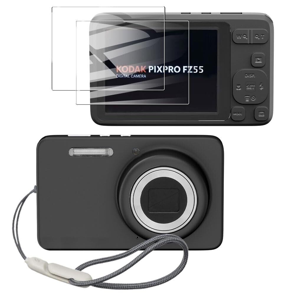 KODAK (コダック) PIXPRO FZ55 用 ケース シリコーン 保護カバー カバー コダック フレンドリー ズーム FZ55 保護ケース耐衝撃性 防水防塵 軽量小型 紛失防止 男女兼用 收納ケース kodak fz55 保護フィルム(ブラック)