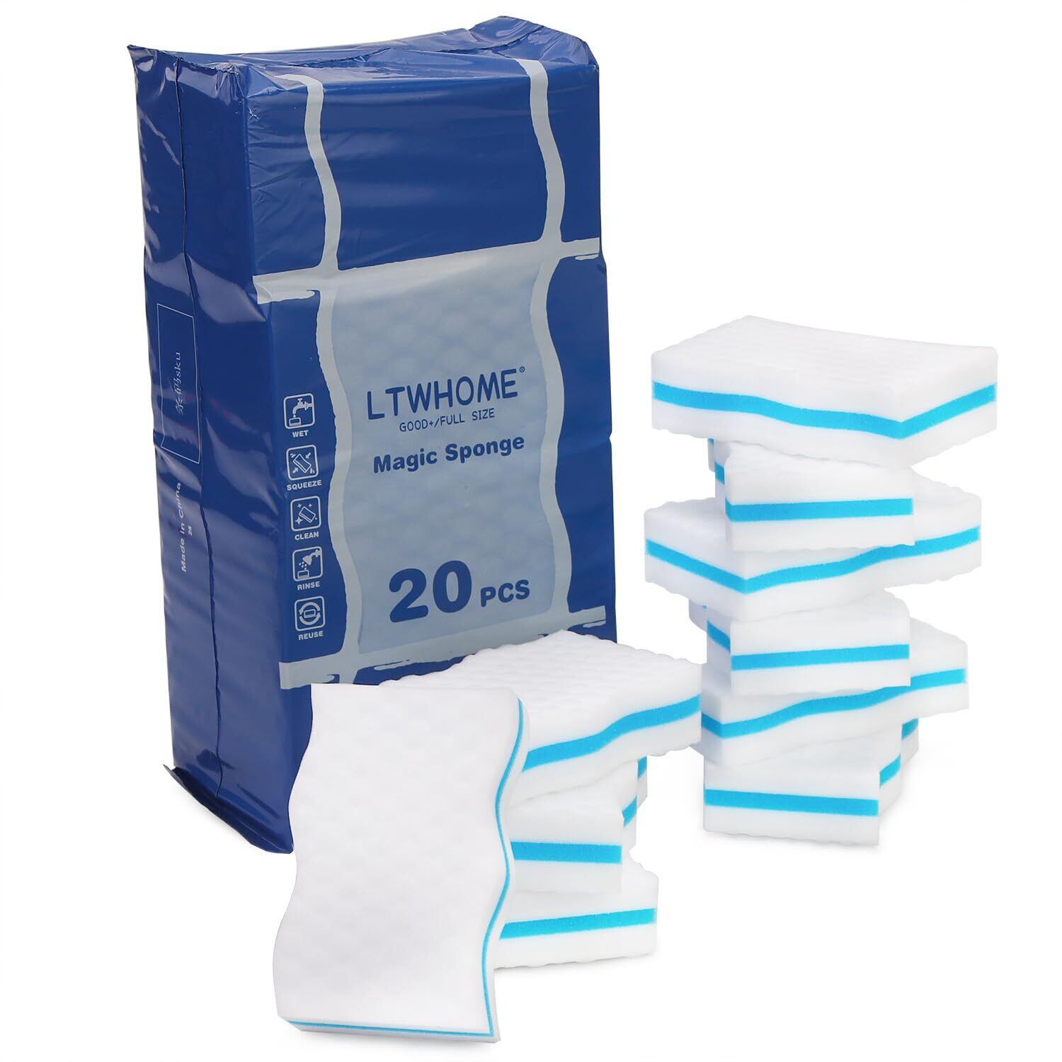 LTWHOME メラミンスポンジ 業務用 掃除 圧縮 10x6x2.5cm 20個入