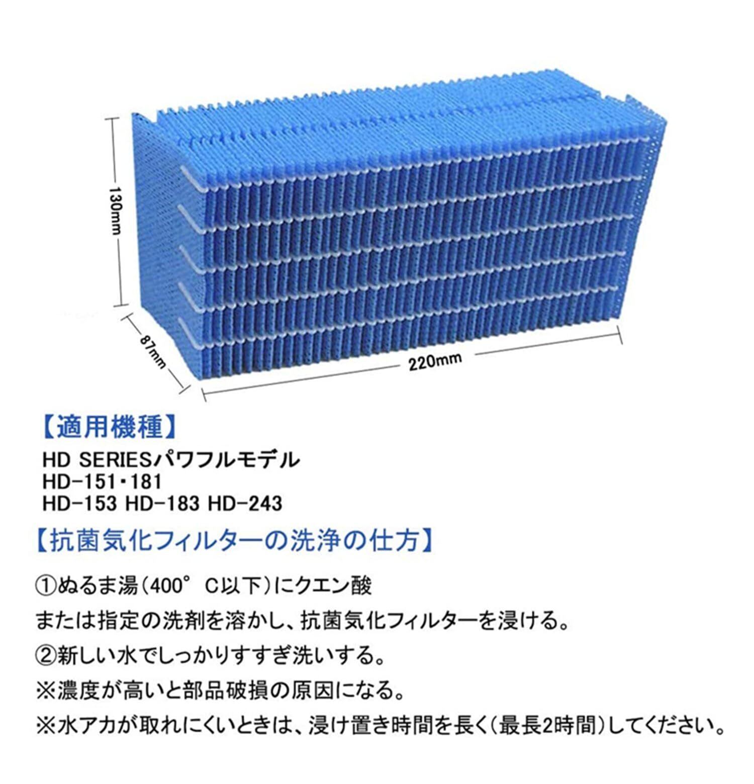 Harpie.J H060519 加湿フィルター 抗菌気化フィルター 抗菌 防カビ 加湿器 フィルター HD-152 HD-1500F HD-151 HD-153 HD-154 HD-1800F HD-181 HD-182 HD-183 HD-184 HD-2400F HD-242 HD-243 HD-244 加湿器用交換フィルター 互換品(1枚入り)