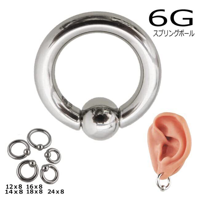 定番ボディピアス ヘビーゲージのプレーンな6Gキャプティブビーズリング ワンタッチ式のスプリングボールなので工具無しで簡単装着できます。 【 注意事項】 この商品は一個売りの商品です。 *内側に当店のロゴが刻印してある場合がございます。汚れやシミではございません。