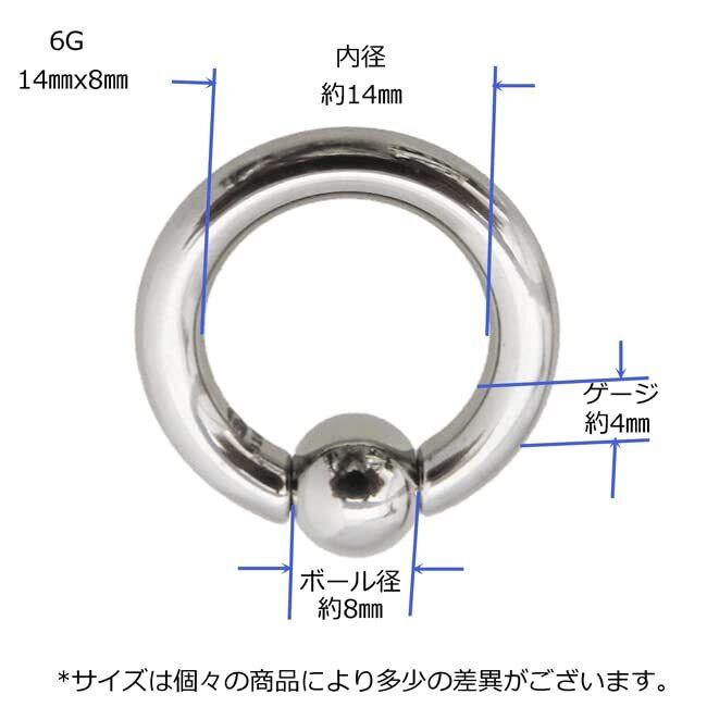 ●素材:ステンレス ボールのスプリング部分;合金 ●形状:ゲージ 6G 約 4.0mm 内径14mm ボール径8mm