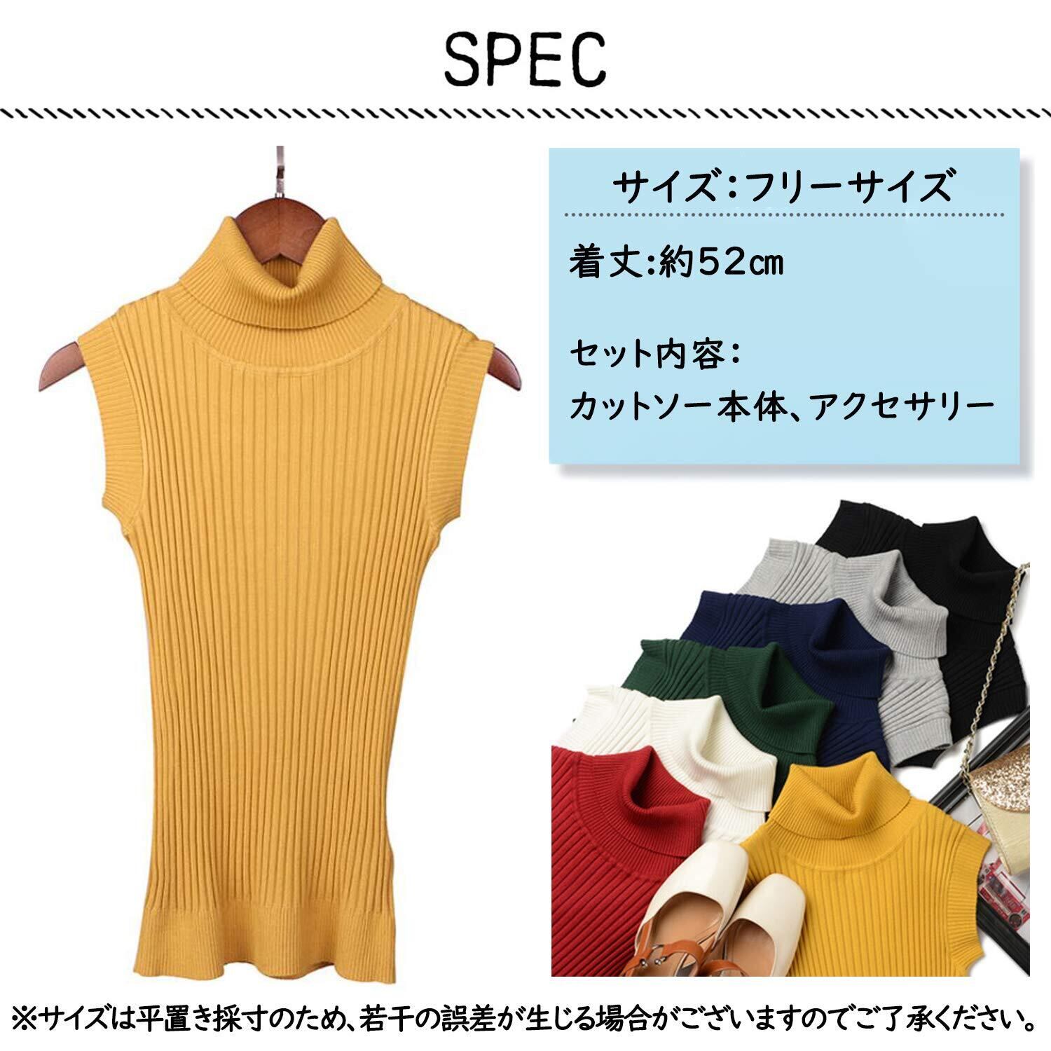 [Ptika] タートルネック ノースリーブ ニット セーター ハイネック レディース アクセサリー 2点セット