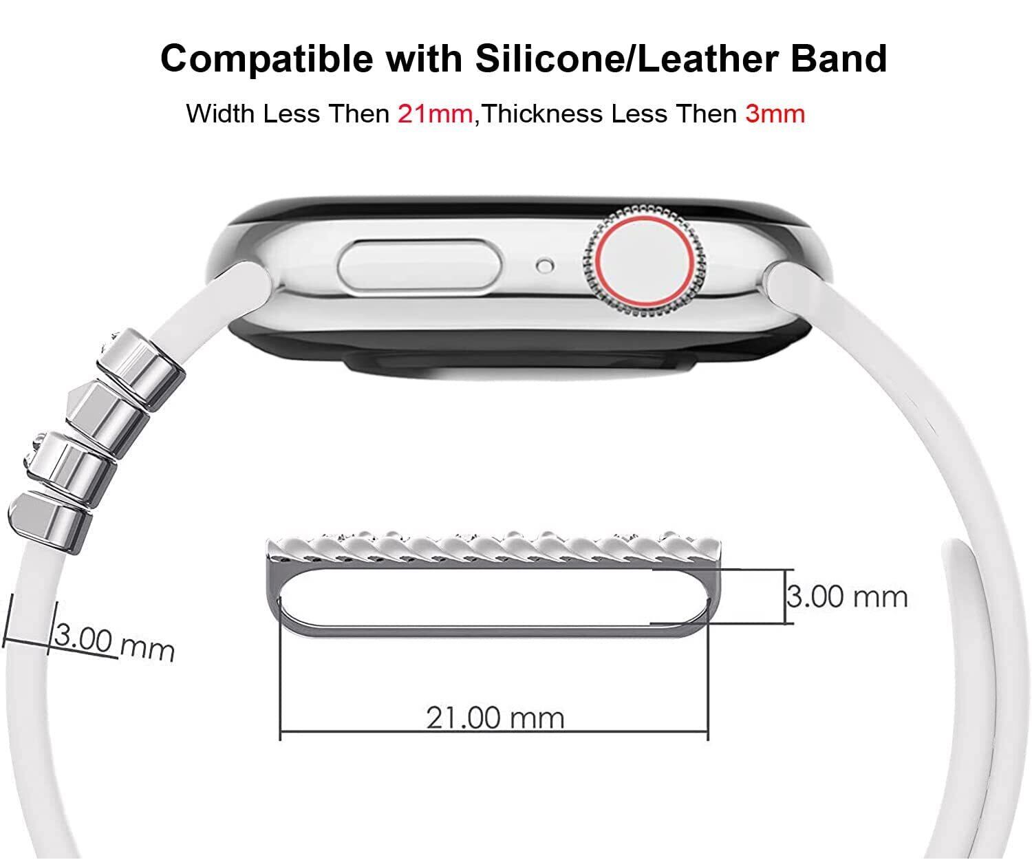 互換性のあるタイプ: ウォッチバンドチャーム リングアクセサリーはiWatch Series 3 38mm/ Series 6 5 4 SE 40mm/ Series 8 7 41mm/Series 3 42mm/Series 6 5 4 SE 44mm/ Series 8 7 45mm/Ultra 49mmおよびその他のタイプのレザー/シリコン ウォッチバンドと互換性があります。