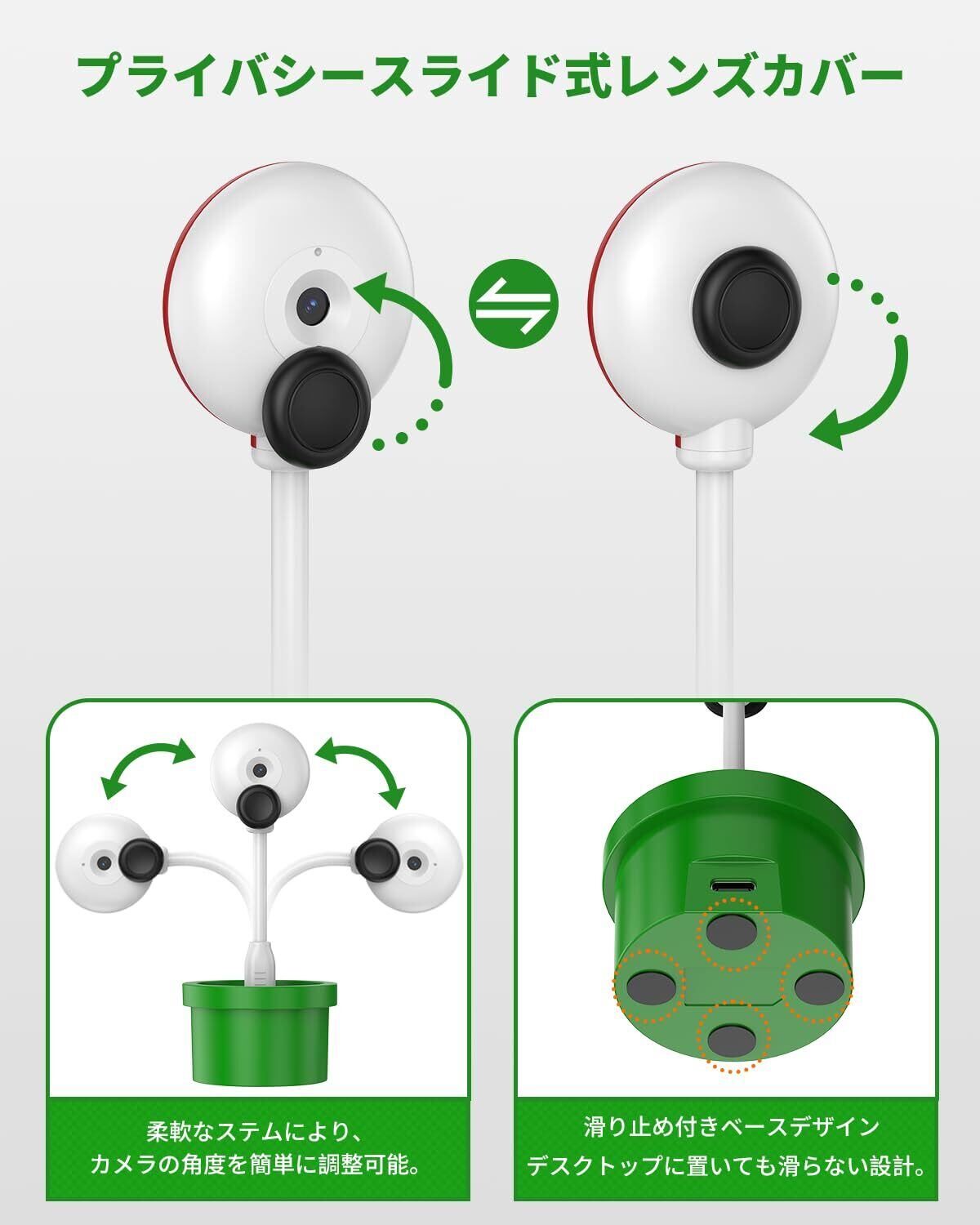 【個性派ロリポップデザイン – インテリアにもなるUSBカメラ】かわいらしいロリポップ型の外観と鮮やかなカラーリングが魅力。使用しないときはカバーでレンズを保護でき、デスク上ではインテリアとしても楽しめるデザインのUSBカメラです。