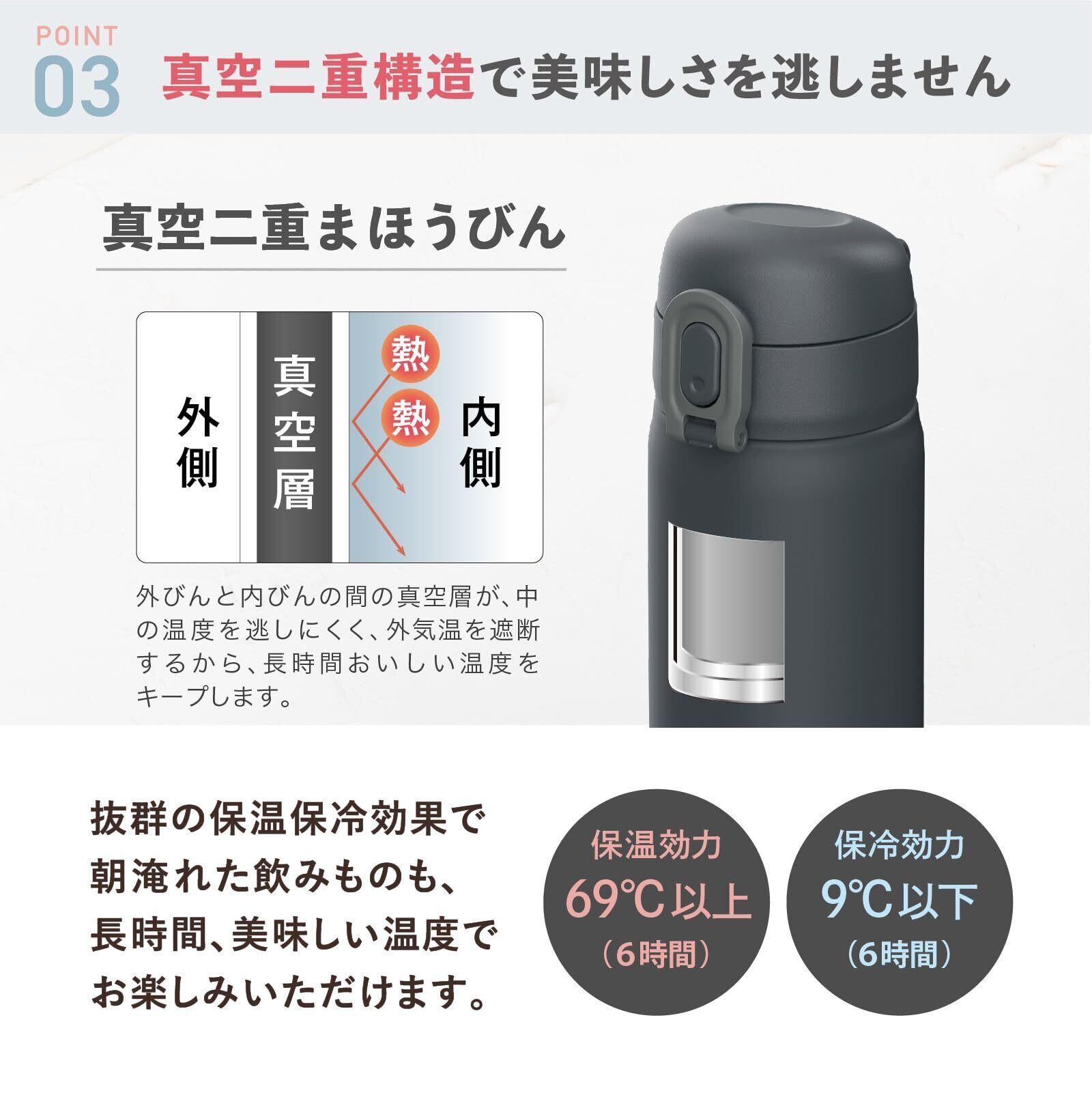 保温効力:6時間/69度以上・1時間/87度以上、保冷効力:6時間/9度以下